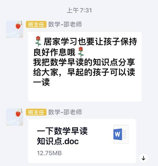 上课认真,课下也不松懈。“我把数学早读的内容发给大家,早起的孩子们看一看。”早上7点,槐荫外海中学的邵老师,就开始为一天的学习做着准备,“以往这个时候,我已经在班里等孩子们了,可能这就是一种习惯吧。”