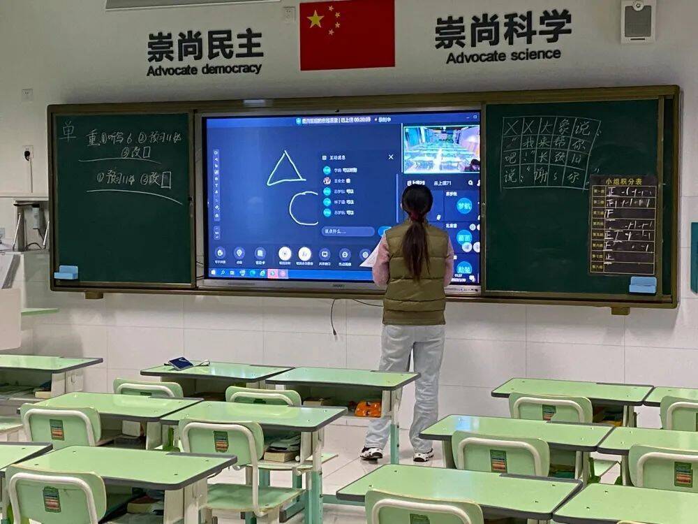 有的老师直接在教室里开讲,虽然面对空空的桌椅,但教与学的现场感与仪式感更加强烈,这也是对未来恢复正常教学的一种期待……