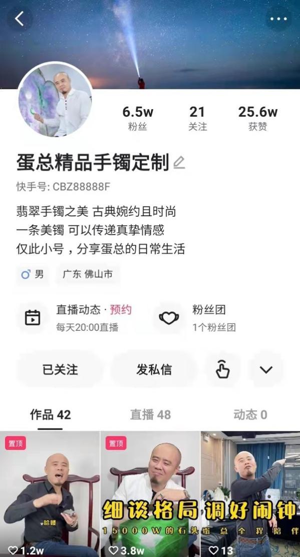 与此同时,也有越来越多粉丝向蛋总咨询翡翠购买和档口联系等相关问题,希望能够通过蛋总买到翡翠产品。就这样,蛋总也在快手开设了自己的直播间。