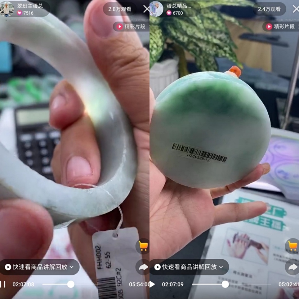 而在货品质量方面,蛋总也加了双重保险。除去产业带源头货品的保障,为了帮助粉丝规避翡翠购买的部分风险,蛋总还会要求主播在直播间展示货品在不同灯光下的色彩,以确保粉丝都能明明白白消费,减少翻车的几率,买到满意的翡翠。