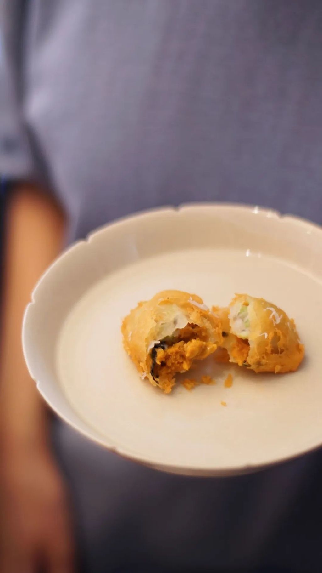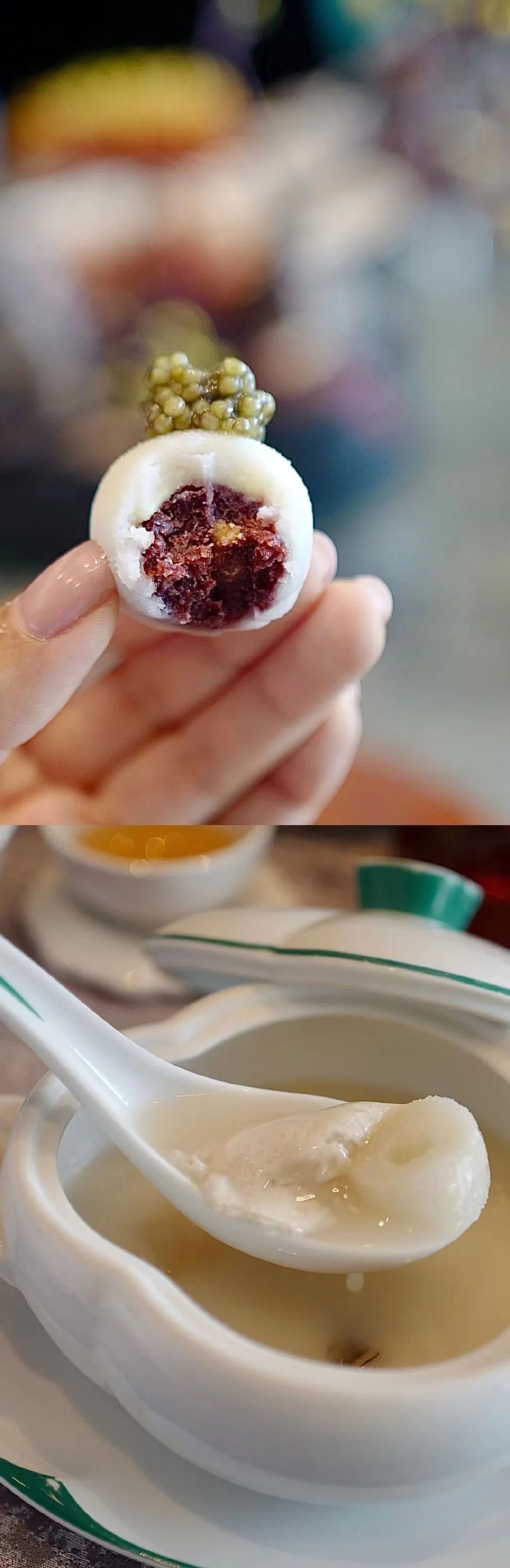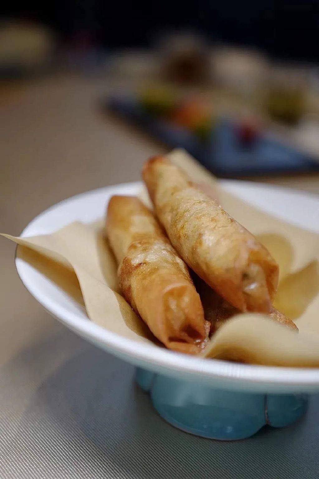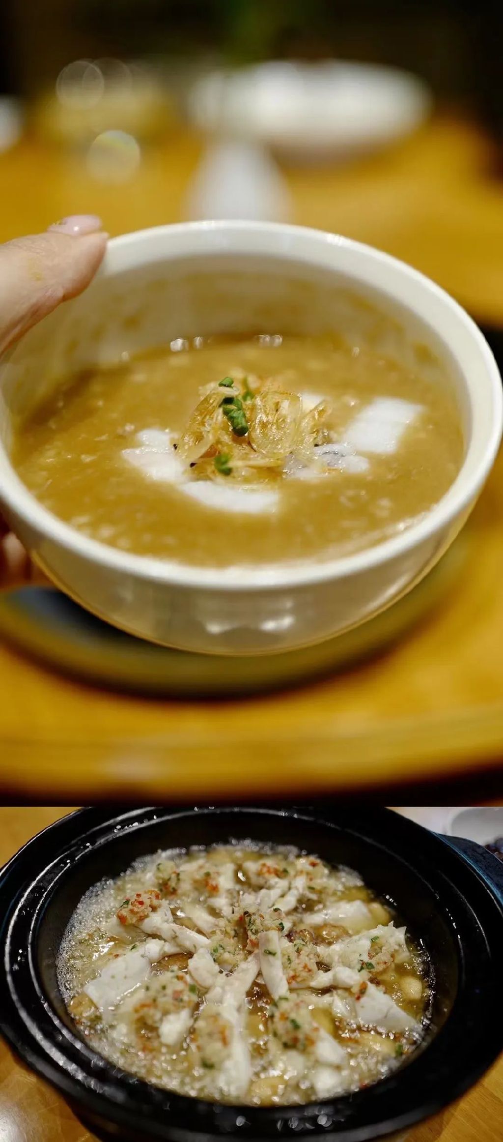 雪菜步鱼春卷拼燕窝青团,对我来说算是双料尝鲜了。今天香水都不用,肉碎蒸雪蟹的三十年陈皮香,鲟龙鱼筋大煮干丝的猪油香,角螺焗清远鸡的香椿香…闻了让人流口水。