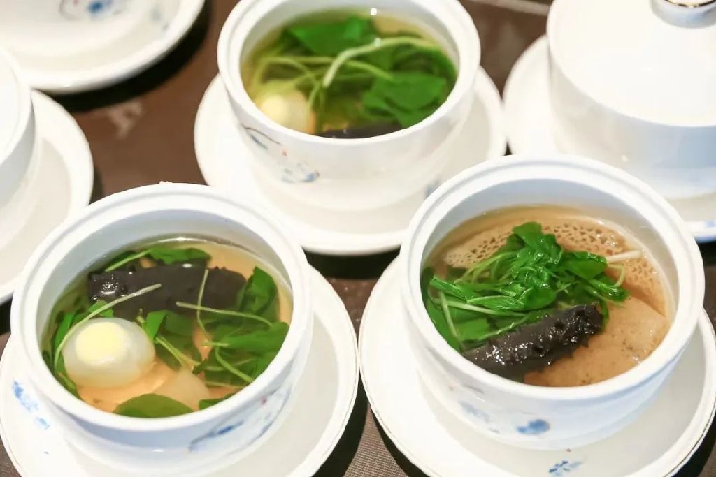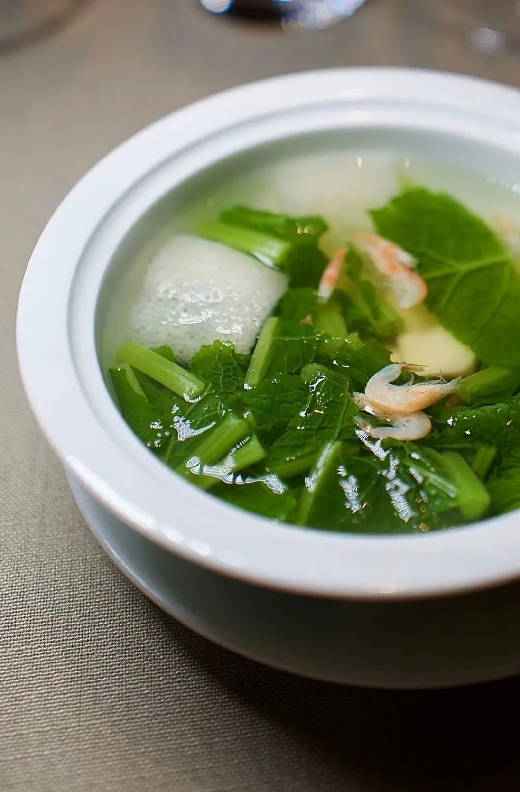 照例一碗豪华豆浆暖心神,之后紧跟一席土步、鲜莼菜、江鲈与甲鱼裙边的清补春菜。