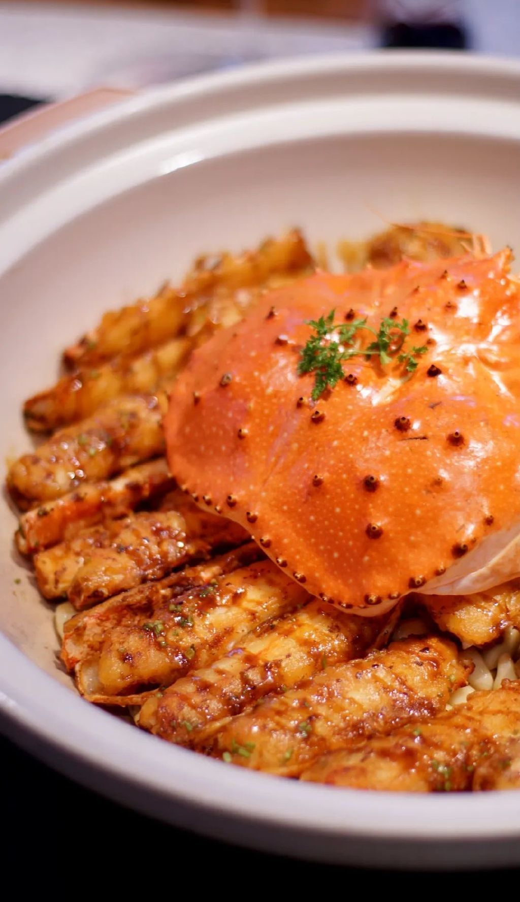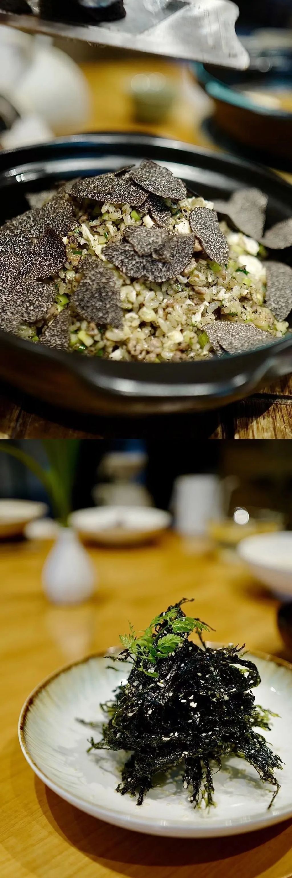 蟹肉腐皮响铃巧,可以一口一个;油渣芋艿羹上面浮了九肚鱼,就更滑;而黑松露饭里有海苔的韵,才香得漫锅盈门。