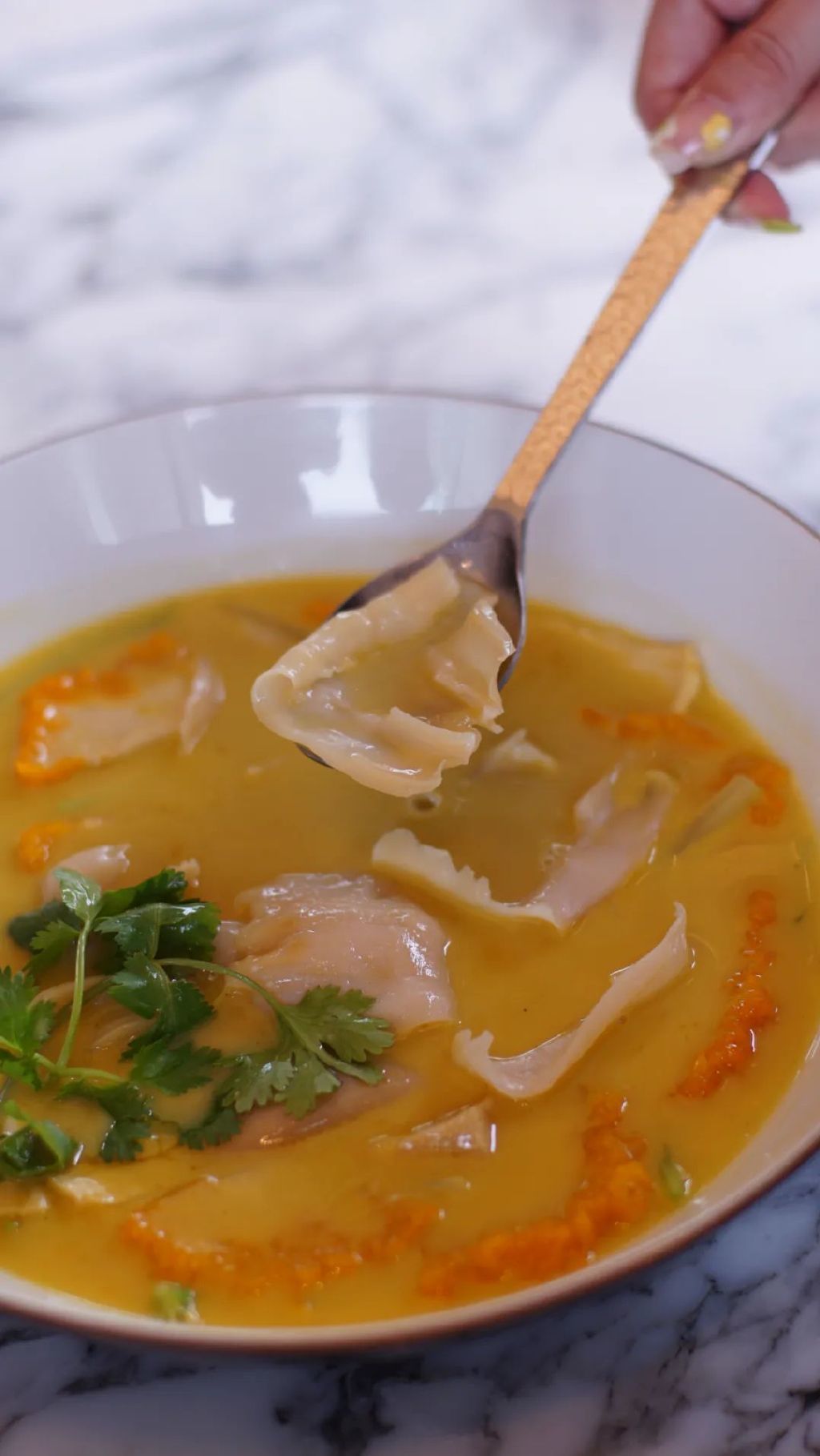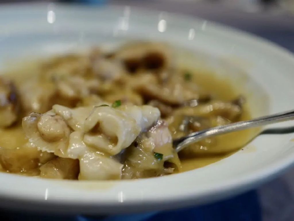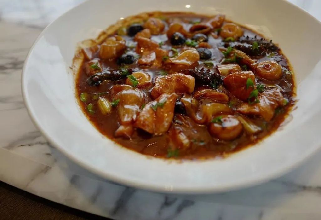 晚上我喝干松茸炖土鸡汤,想不到盲盒菜是辣椒爆鸽脯肉,胸大肌到副乳都补上了…
