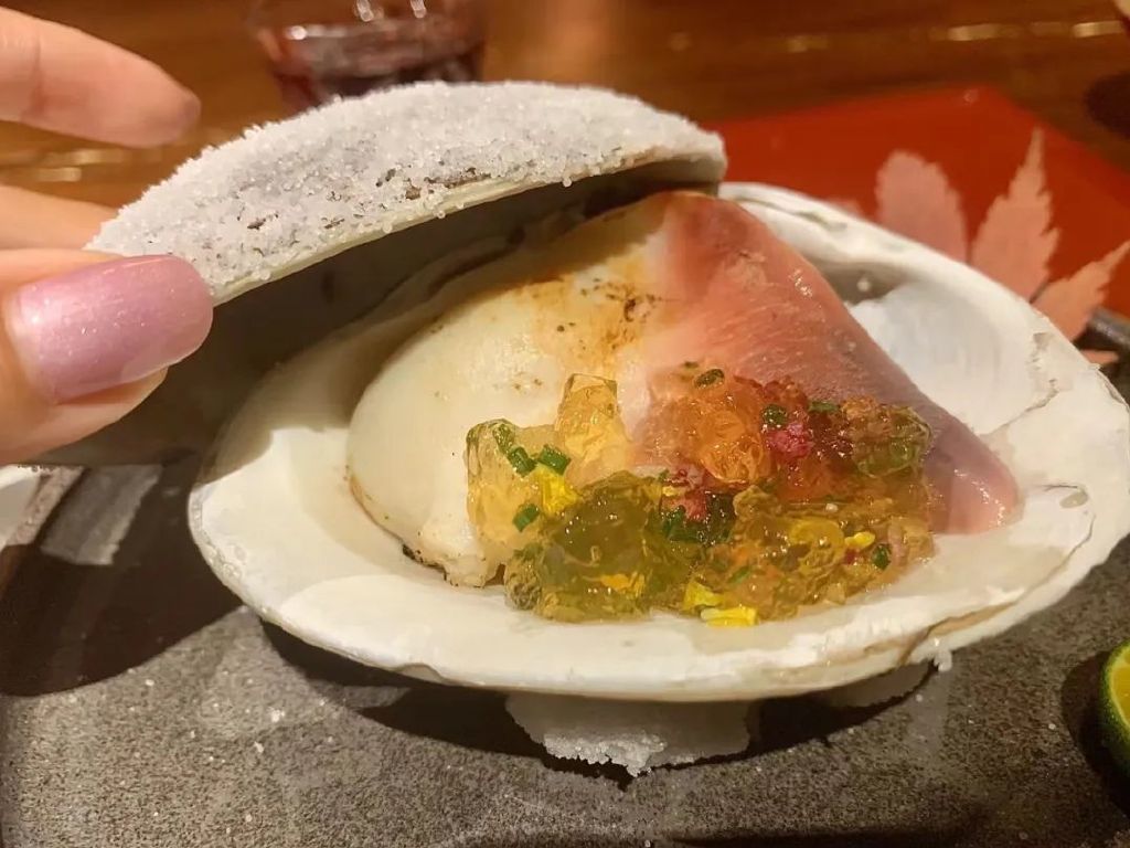 特别是主厨Wing从日本背来的淡雪盐,洒在鲛鲽鱼的裙边上,炙烤后的油脂吸收这若有似无的鲜咸味,变得香浓。