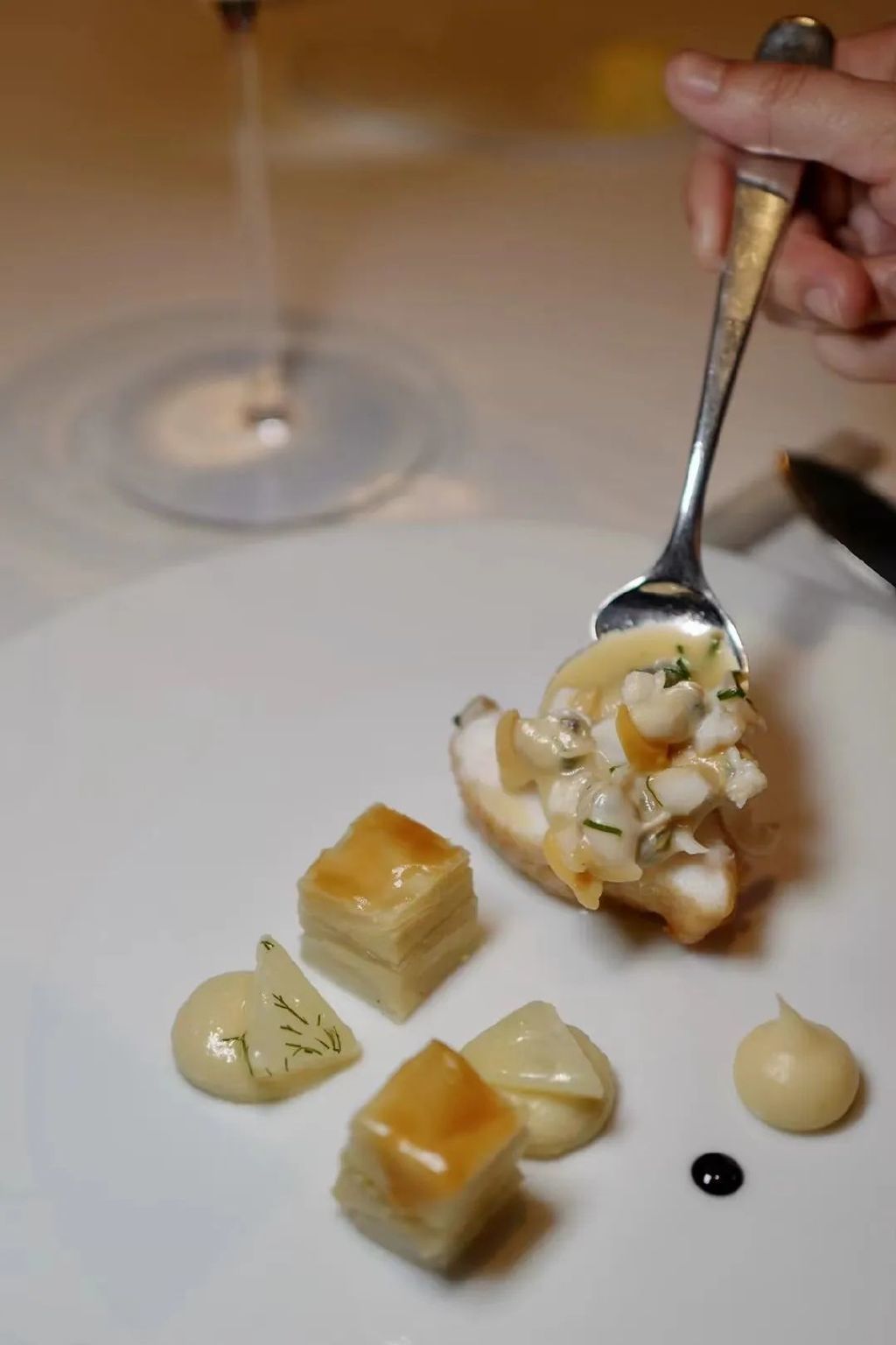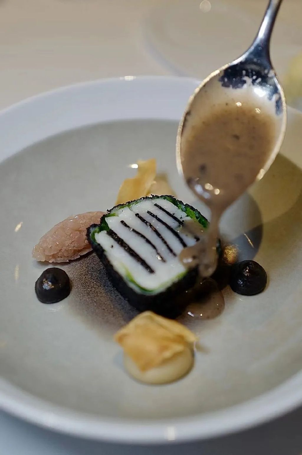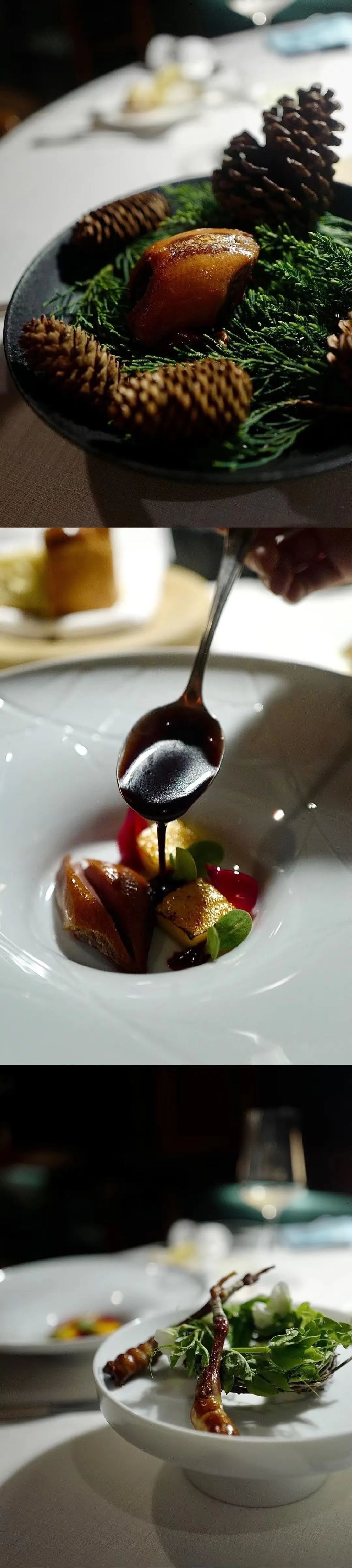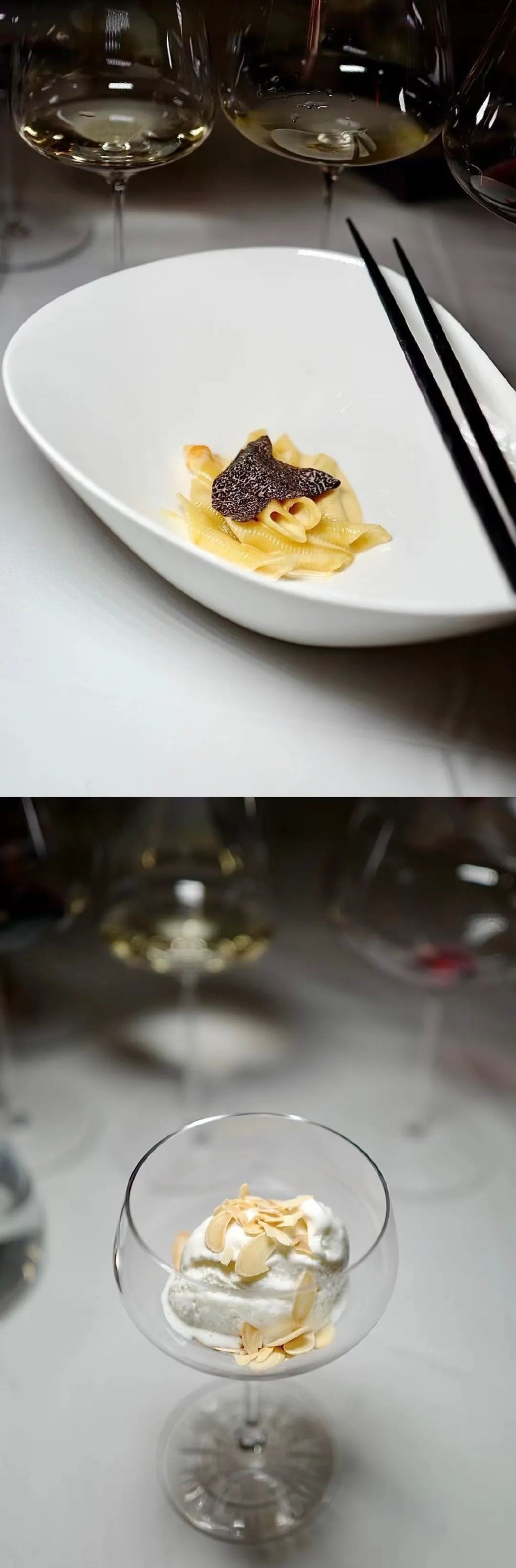 日本吉品15年鲍鱼用鲍鱼原汁再加法国汝拉黄酒做的调味。牛肝菌让人大快朵颐,充满黄油菌汁的高地威士忌焦化泡沫,正好呼应牛肝菌鲜鲜的荒野气息。吃到新鲜松露的手做意大利面与清酒牛奶冰霜,我又临时长出一个胃来。