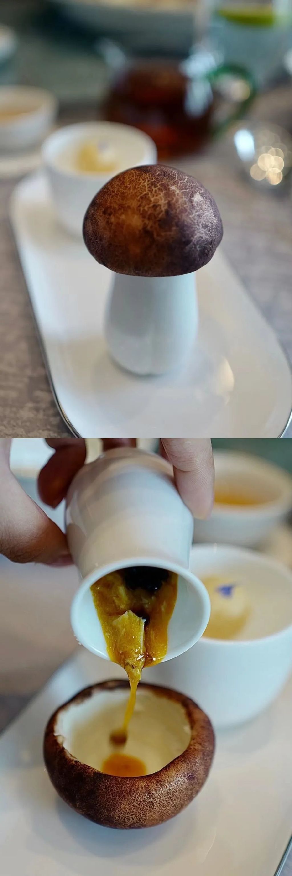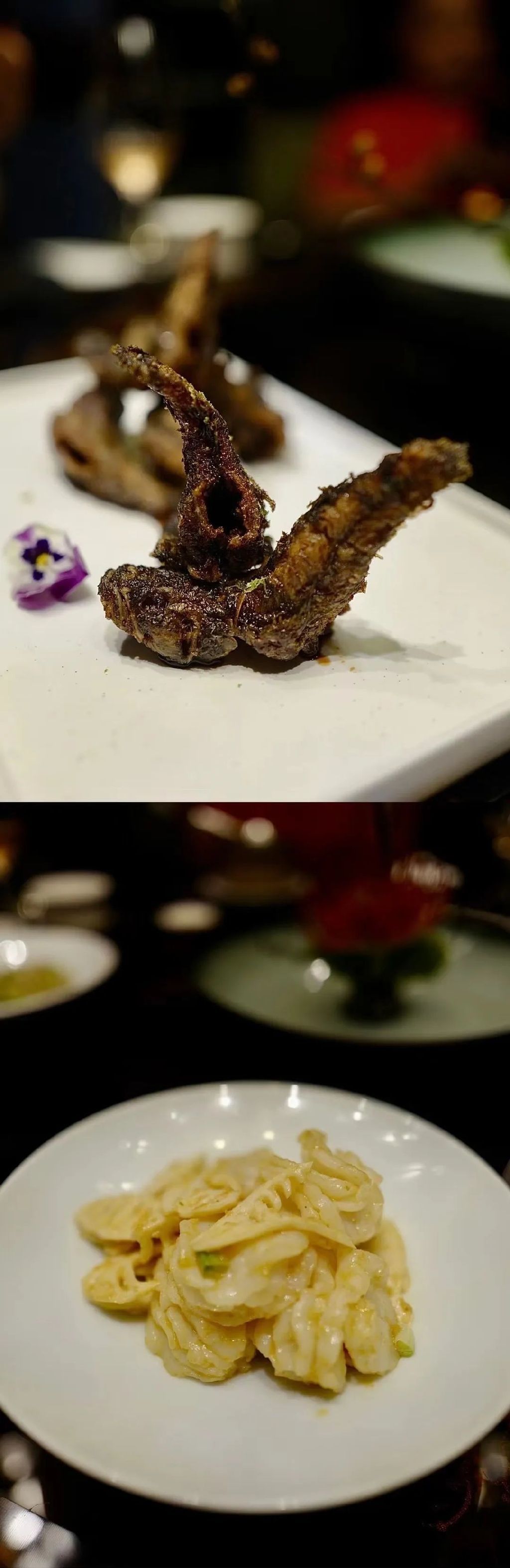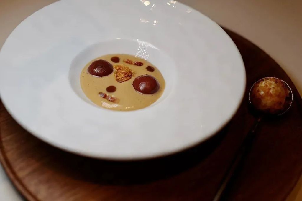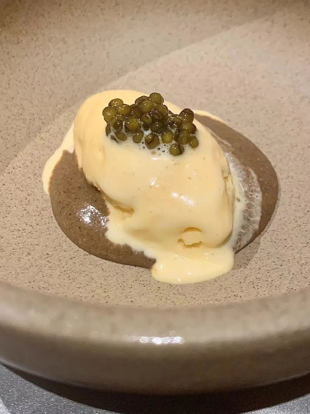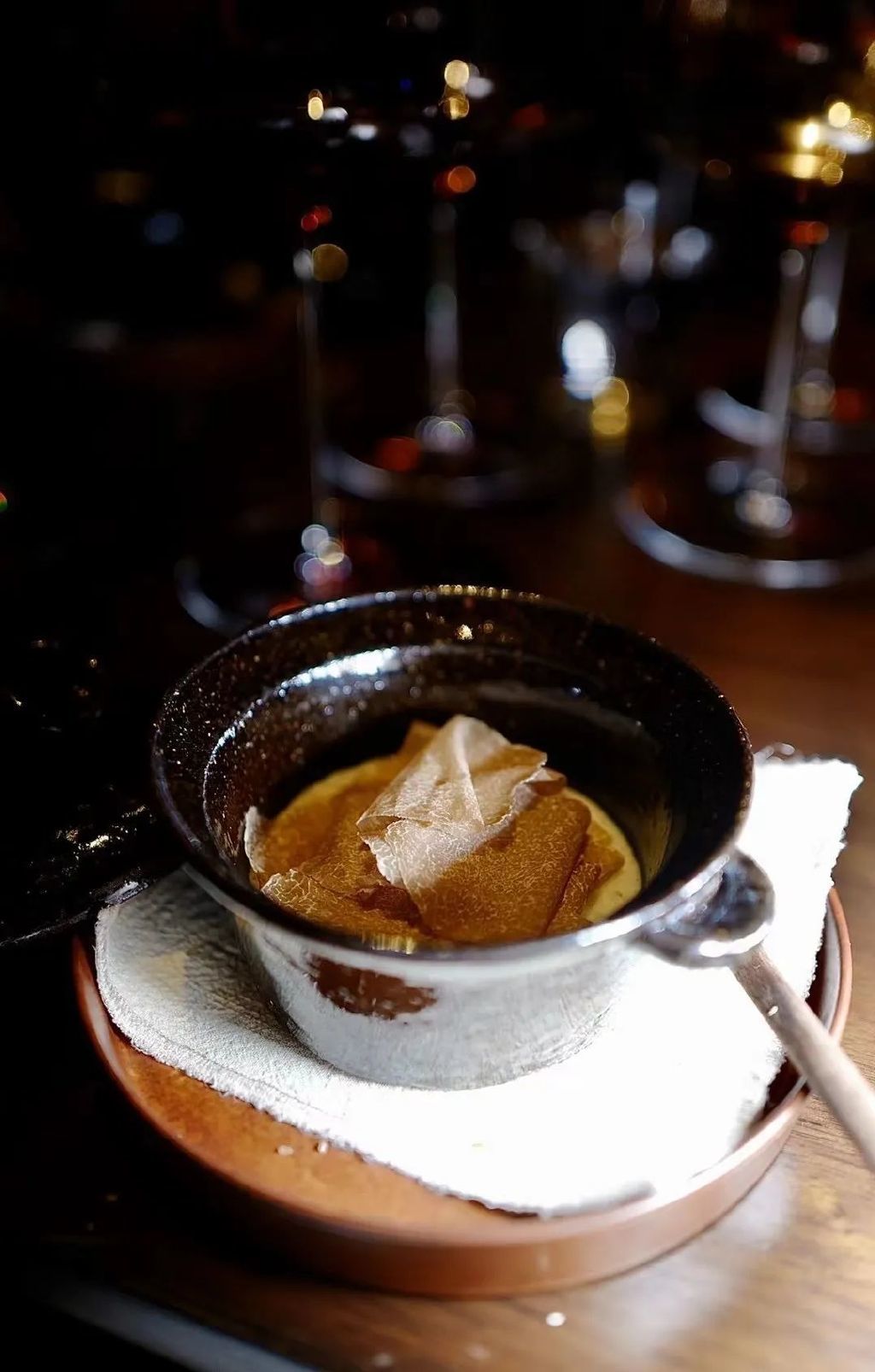 日本吉品15年鲍鱼用鲍鱼原汁再加法国汝拉黄酒做的调味。牛肝菌让人大快朵颐,充满黄油菌汁的高地威士忌焦化泡沫,正好呼应牛肝菌鲜鲜的荒野气息。吃到新鲜松露的手做意大利面与清酒牛奶冰霜,我又临时长出一个胃来。
