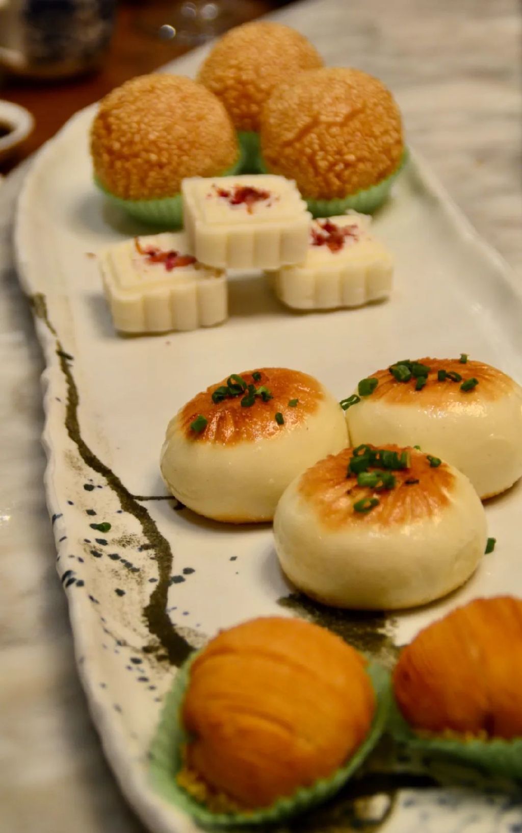 他家自采自炒的今年西湖头采明前龙井,产自白鹤峰。松软透气性土质出产的群体种龙井,味道上丰富性更强,正好配一块粗粝米粉感的手工枣泥定胜糕。