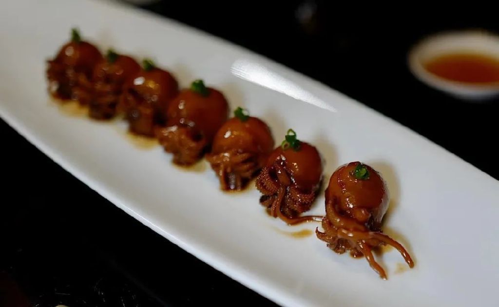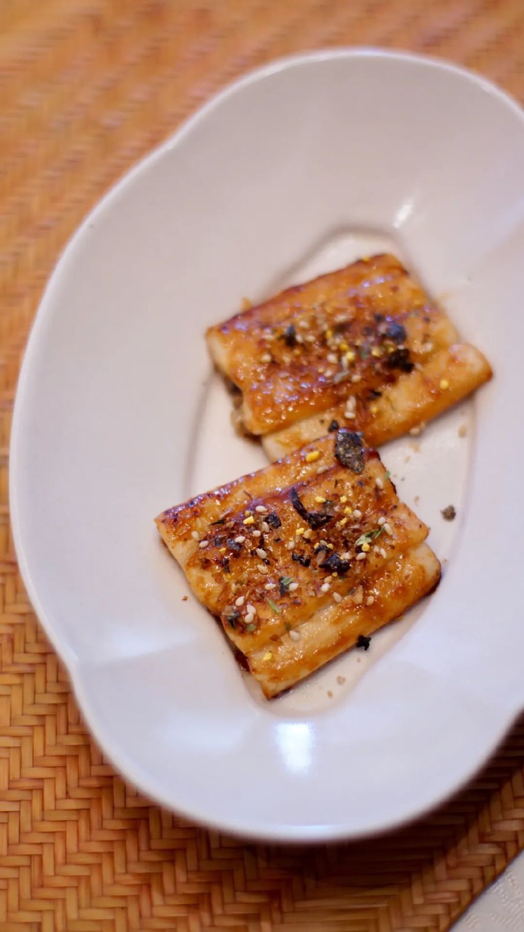 东海雷达网带鱼用了碳烧鳗鱼的做法,去骨带鱼比鳗鱼少一分肥腻,多一分细嫩。