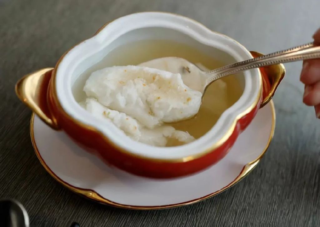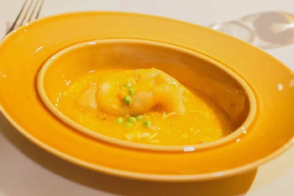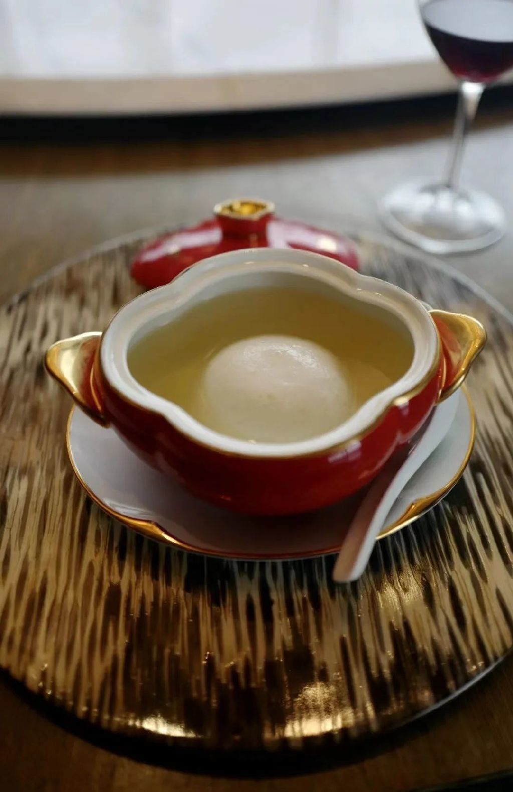 而这里的汤与酱汁也是可圈可点,金吉鱼用金线鱼汁调味只是序曲。燕皮云吞用牛肉火腿的高汤料理才是男高音的high C,功夫都在醇厚里!