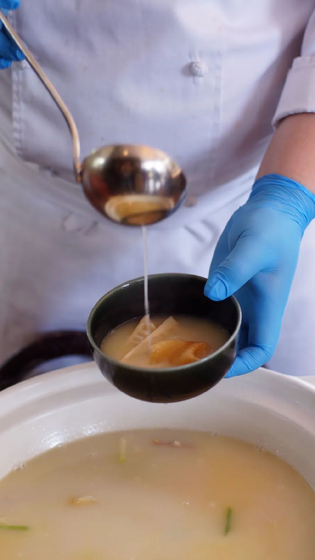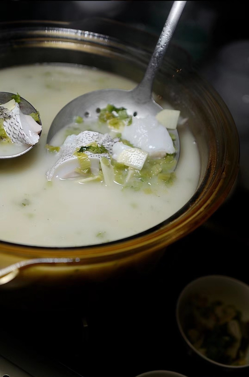 硬菜不得了,施大师他早上去问海钓船长高价收了一条六斤米鱼来,就为和雪里蕻与冬笋煲一碗暖透心扉的汤。那干发鱼胶我是吃怕了,鲜的米鱼胶才叫糯,细密而不粘腻。