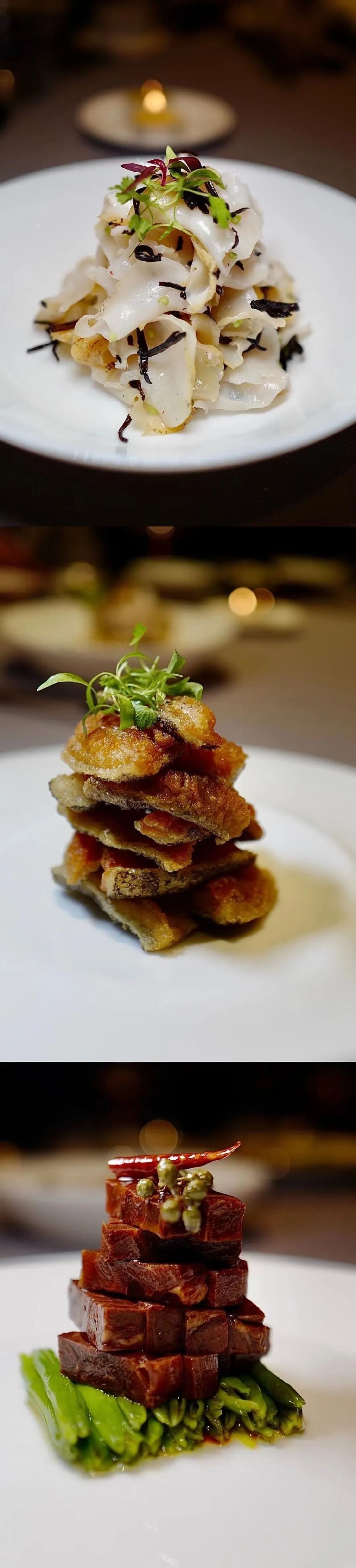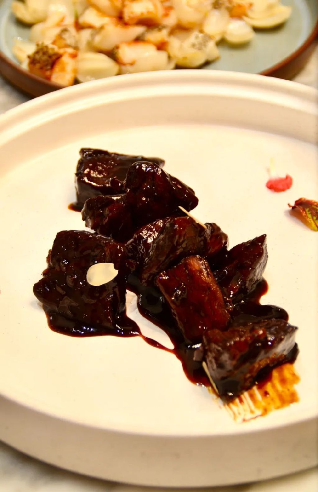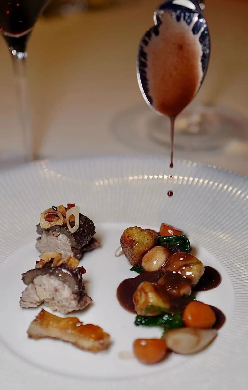 杭式响铃豉油肉和意大利黑醋和牛的脆皮与脂香的交响,还是浓浓的俞斌大师风。