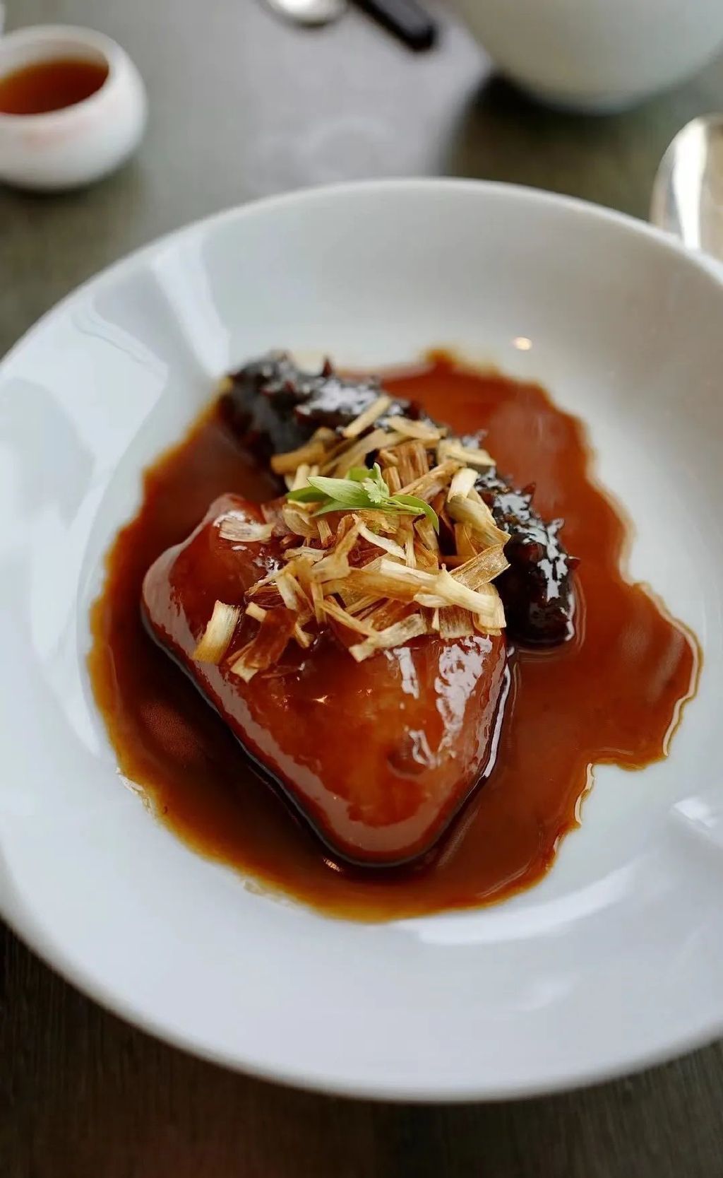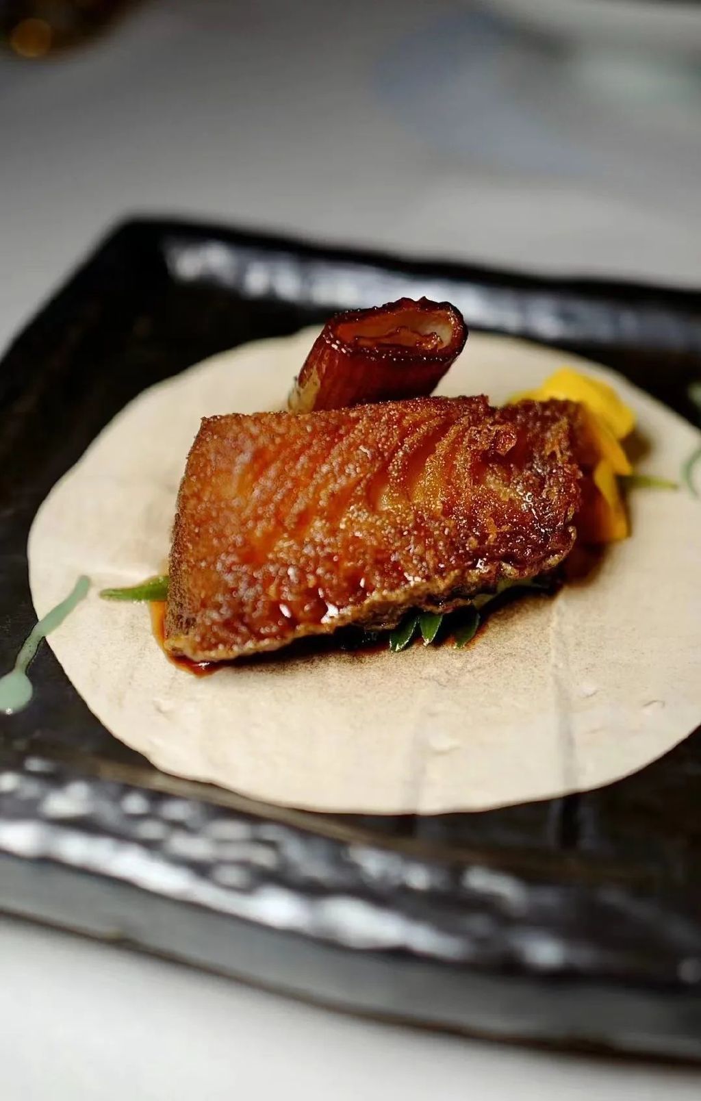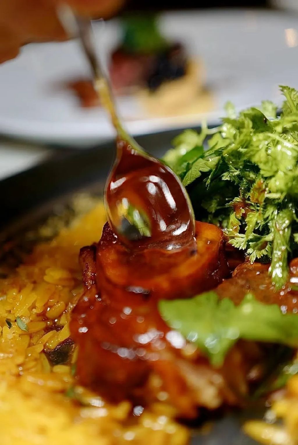 杭式响铃豉油肉和意大利黑醋和牛的脆皮与脂香的交响,还是浓浓的俞斌大师风。