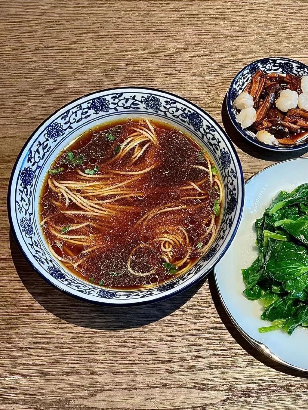 好久没吃早餐,为了一碗苏州头汤面眯眼下楼。这红汤的“红”可不止酱油,又称为“助汁”,苏州焖肉、爆鱼与传统高汤的精髓可能都交融在一口里,秘不透人,但浓厚清鲜,喝完脊背透汗。名厨虞晓祥说,这里还有一些隐藏菜单。我正咖啡消食着,听着眼睛都亮了~