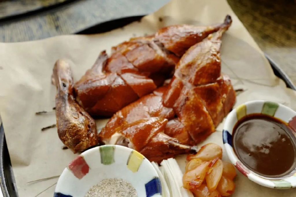 运河边中式院落里的静谧小馆,果木烤鸭趁热吃,争分夺秒,没有留影。