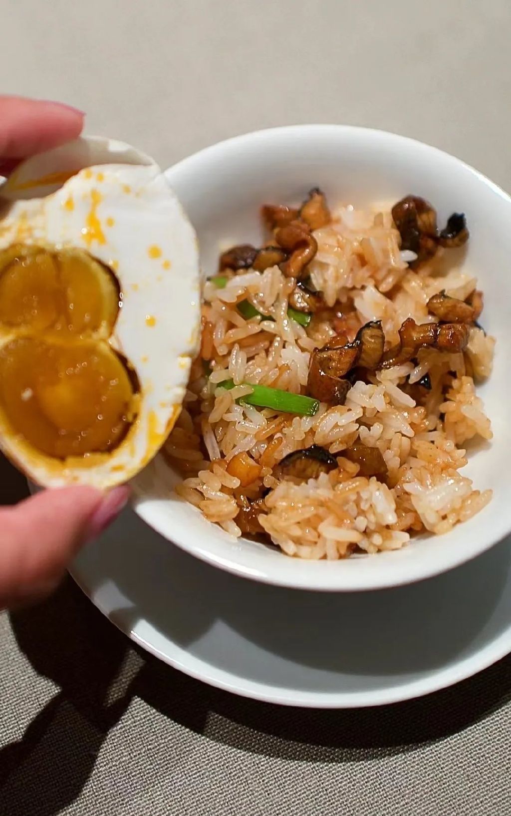 红烧肥肠捞饭,吃完镇一口荒野老白茶,舒服。