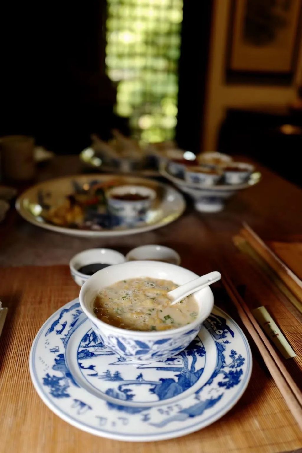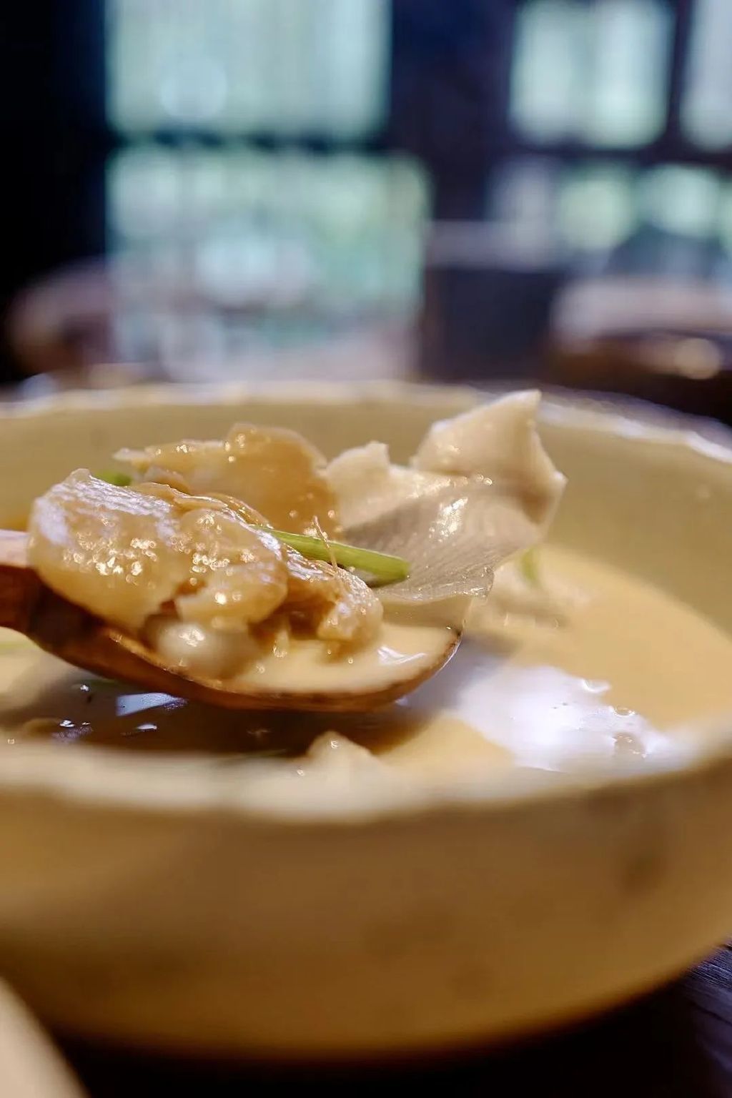 雨后的灵隐,白云来相迎,涧泉飞瀑素。这碧绿春山附近最亲近我的味道就是兰轩,和老板镇昊喝一口松香榄仁鱼羹,尝几口细菜,闲聊几句,互通平静内心。