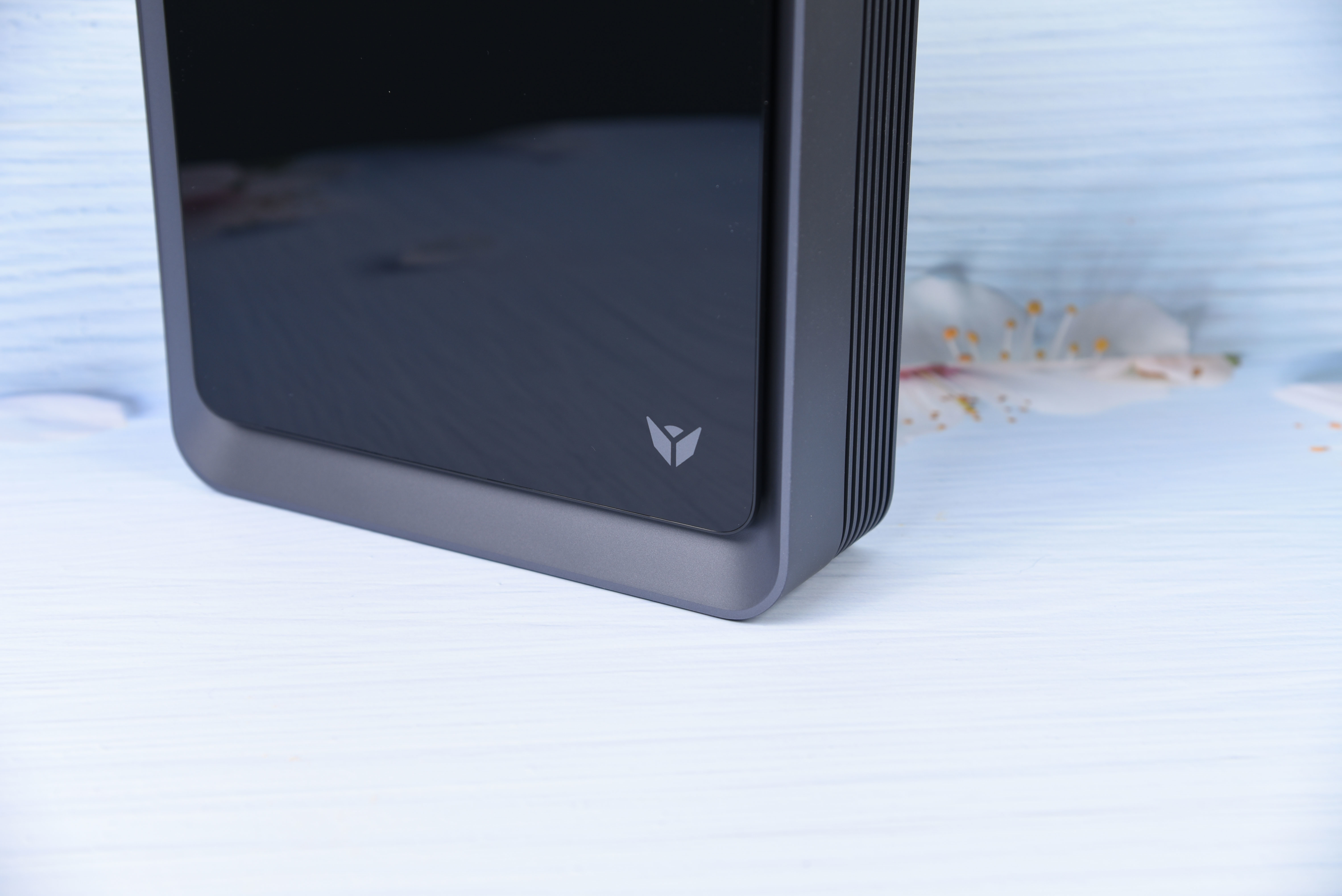 路由器前面板采用了亚克力材质,上半部分为一块隐藏式LED点阵屏幕,可以显示时间、天气、和连接设备数量等信息。
