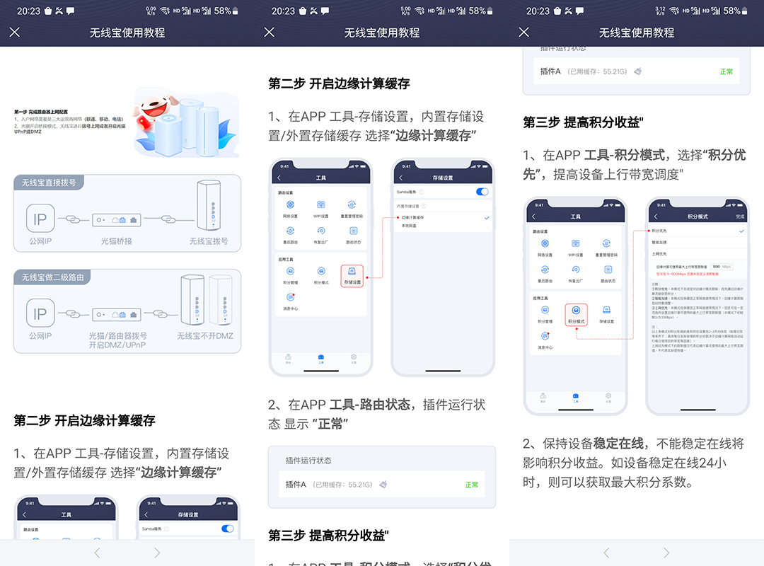 无线宝的边缘计算服务,服务于京东云的核心业务、B端企业,同时C端用户可以享受到更快速的下载体验。 对于大多数家庭而言,家中的宽带除了下班在家时会有所使用之外,80%以上的时间其实都处于闲置状态。这部分闲置资源搭配路由器的存储空间,可作为一个分布式的存储节点,将原本需要存储在网络服务器上的资源分发到不同路由器的硬盘上,这些缓存了网络资源的路由器就成为了互联网中的边缘计算。当你想从A网站下载一部电影时,原本需要从A网站服务器获取的数据,变成了从其他附近缓存了该电影的路由器上获取。对于A网站而言,这种做法可以降低他们购买边缘计算服务器的成本,A网站将节省出来的费用根据边缘计算量支付给提供了边缘计算服务的路由器设备,这也就是路由器利用闲置资源为我们赚取收益的原理。