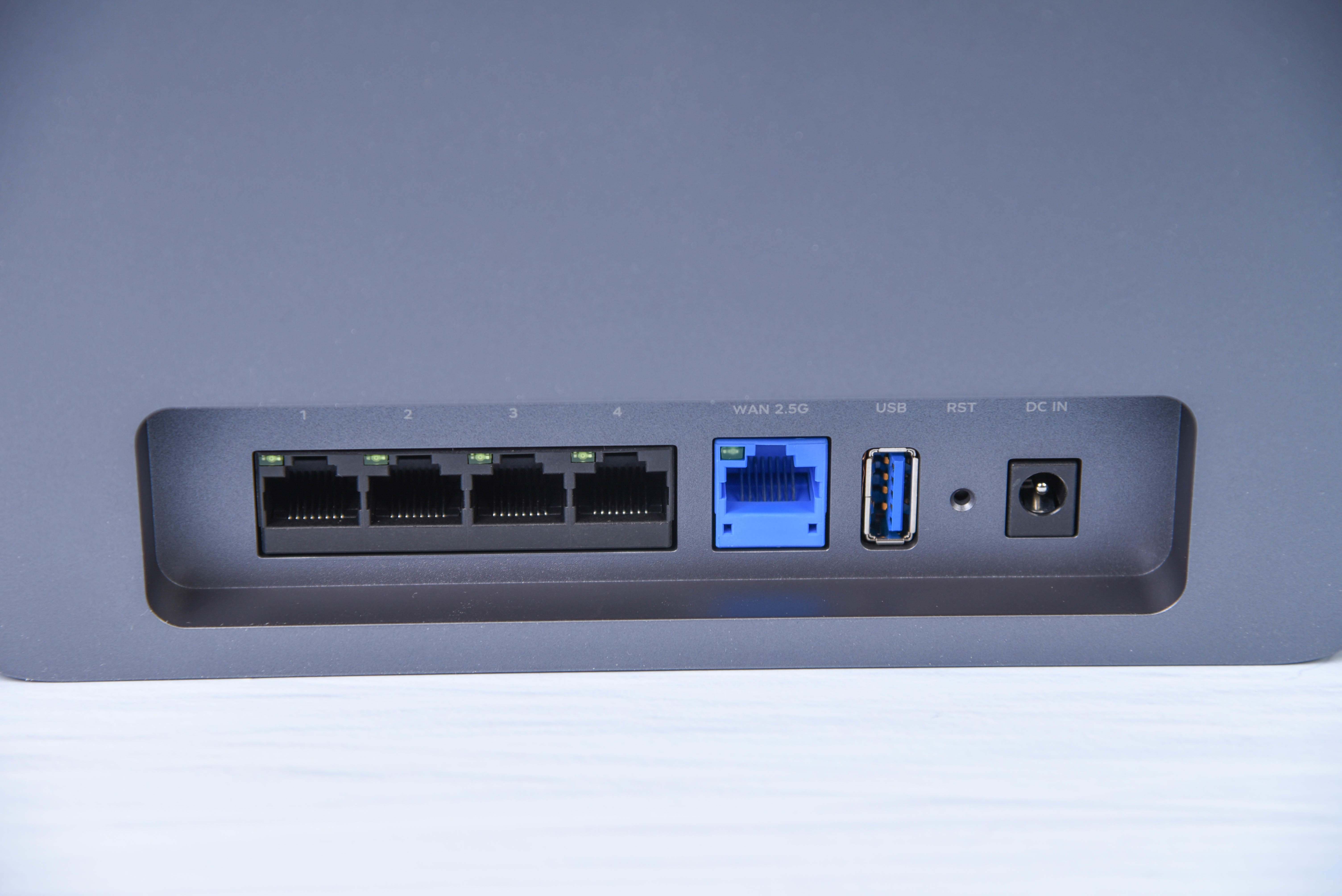 在接口方面,京东云无线宝AX6600的后侧内置了1个10/100/1000/2500M自适应WAN口,4个10/100/1000M LAN口,1个USB 3.0接口、以及1个电源接口。