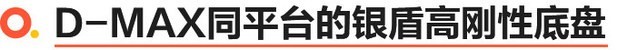 在底盘方面,2022款经典瑞迈毫无悬念地沿用与D-MAX同平台的银盾高刚性底盘,悬挂系统采用前双叉臂独立悬架+后高强度钢板弹簧的形式,抗扭性能优异。