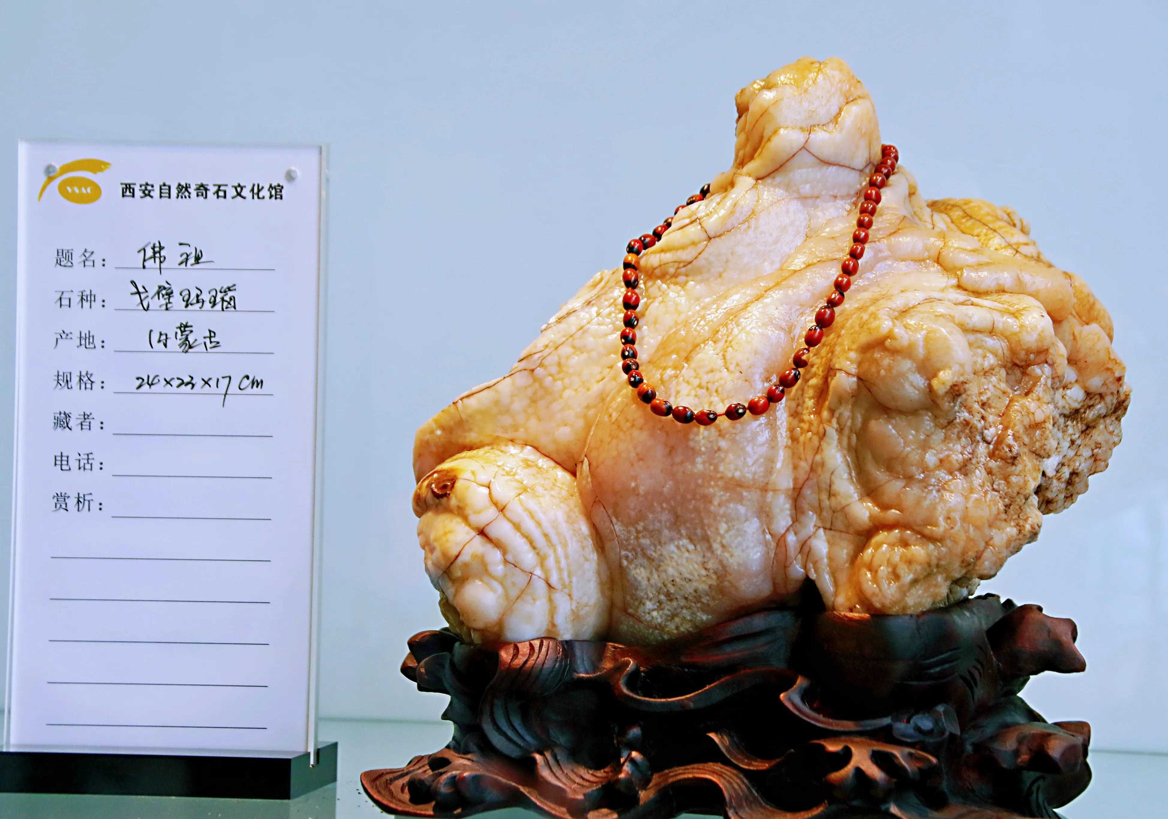自然奇石文化馆坐落于西安世博园锦绣湖畔,以世博园自然馆为依托,自然雕琢的奇石与丰富的植被生态景观在这里融合呼应,是一方绝佳赏石之地。馆内以中小型精品奇石为重点,分为上下两层展区,共展出包括古生物化石、矿物晶体、水石、戈壁石等各类奇石四大门类,百余个品种,千余方奇石展品。其中不乏在全国赏石界享有较高知名度和赞誉度的奇石精品,如戈壁石《金狐》、葡萄玛瑙石《世博之星》、黄河石《金色晚霞》等。“灵气旁流到物产,石状离奇色明洁”。大自然鬼斧神工铸就了千姿百态、玲珑迥异的各类奇石,人们以石为媒介托情寄意,为石头赋予人文的力量和色彩,驻足于琳琅满目的奇石展品前,仿佛能感受到山川自然之灵气破石而出,不由得赞叹存在于石头中的妙趣横生、意蕴悠远。