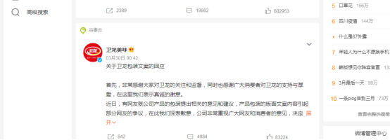 3月30日凌晨,卫龙就包装文案被指低俗打擦边球致歉并回应称,决定停止有争议文案包装的生产,并进行版面文案及设计的优化。