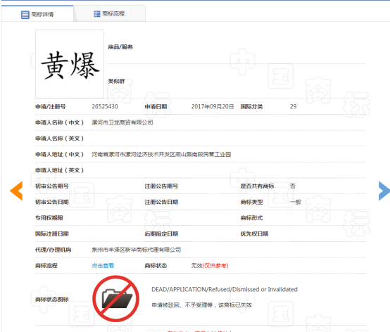 圈圈查询发现,卫龙公司漯河市卫龙商贸有限公司确实也曾申请过一些涉嫌打低俗擦边球的商标,包括快乐撸起来、贼大、贼棒、黄爆、嘿嘿嘿木耳等,国际分类多为方便食品、食品。不过,这些商标均未获国家知识产权局商标局审核通过,目前为无效状态。