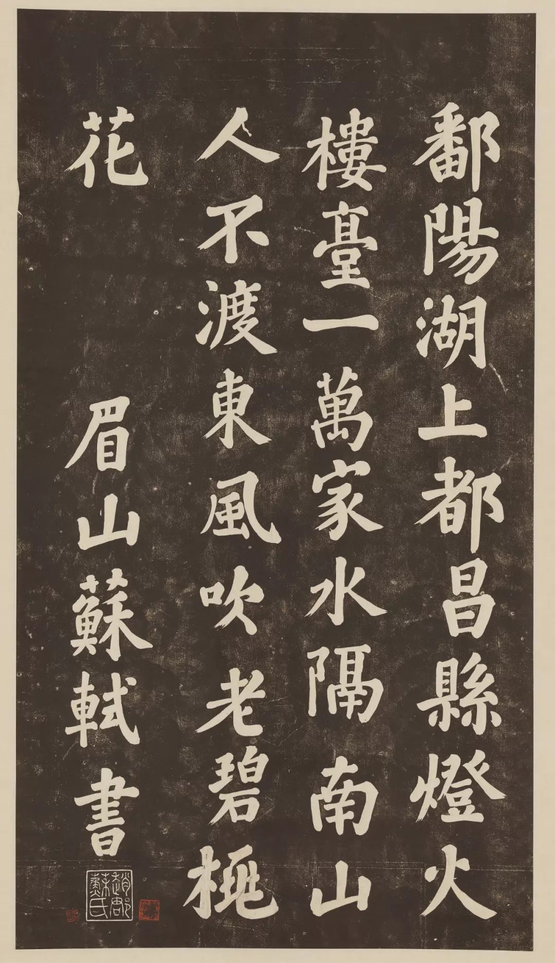 此帖为苏轼的大字楷书作品,内容的是苏轼自己所做的一首七言绝句《过都昌》。
