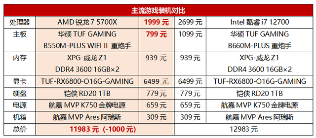 因此,对于主要需求游戏性能的玩家来讲,锐龙7 5700X搭配高端独显使用明显更实惠。从价格来看,锐龙7 5700X相比酷睿i7 12700有700元的优势,主板价格也有200~300元的优势,性价比高出很多,玩家把这个价差用来升级硬盘或者让显卡再提升一个档次,也可以获得更佳的游戏体验。所以综合来说,对于选择两千元级处理器装机的主流游戏玩家来讲,锐龙7 5700X比酷睿i7 12700更值得购买。