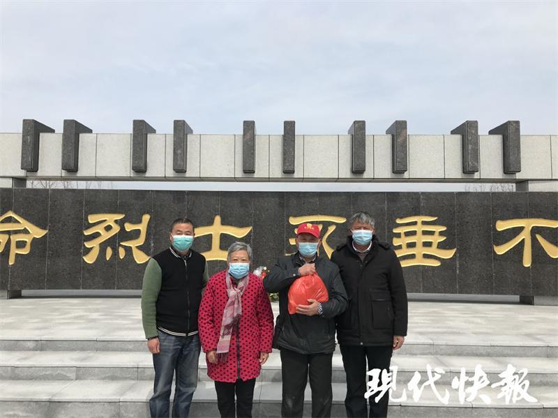 现代快报讯(记者 姜振军 文 / 摄)" 四叔,我们终于找到你了!" 清明节前夕,盐城五条岭烈士陵园,来自盐城市阜宁县陈良镇的王兰云和家人在烈士坟冢前深深鞠躬,她眼里噙着泪水,小心翼翼地取走一捧土," 带走一捧坟头土,就是带四叔回阜宁老家了。" 而这一天,亲人等了整整 75 年。