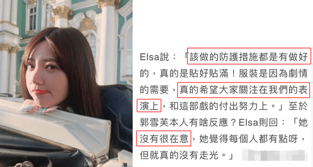 然而,近日郭雪芙在剧中的一张疑似走光照遭到全网疯传,尺度颇大令人咋舌,甚至还出现了「露点」的情况,快速引起大家的关注。郭雪芙一直以她的高挑身材和黄金比例为公众所熟知。2015年,郭雪芙连续第三次获得百大,台FHM全球性感美女称号,一直是好男人的邻家女神。