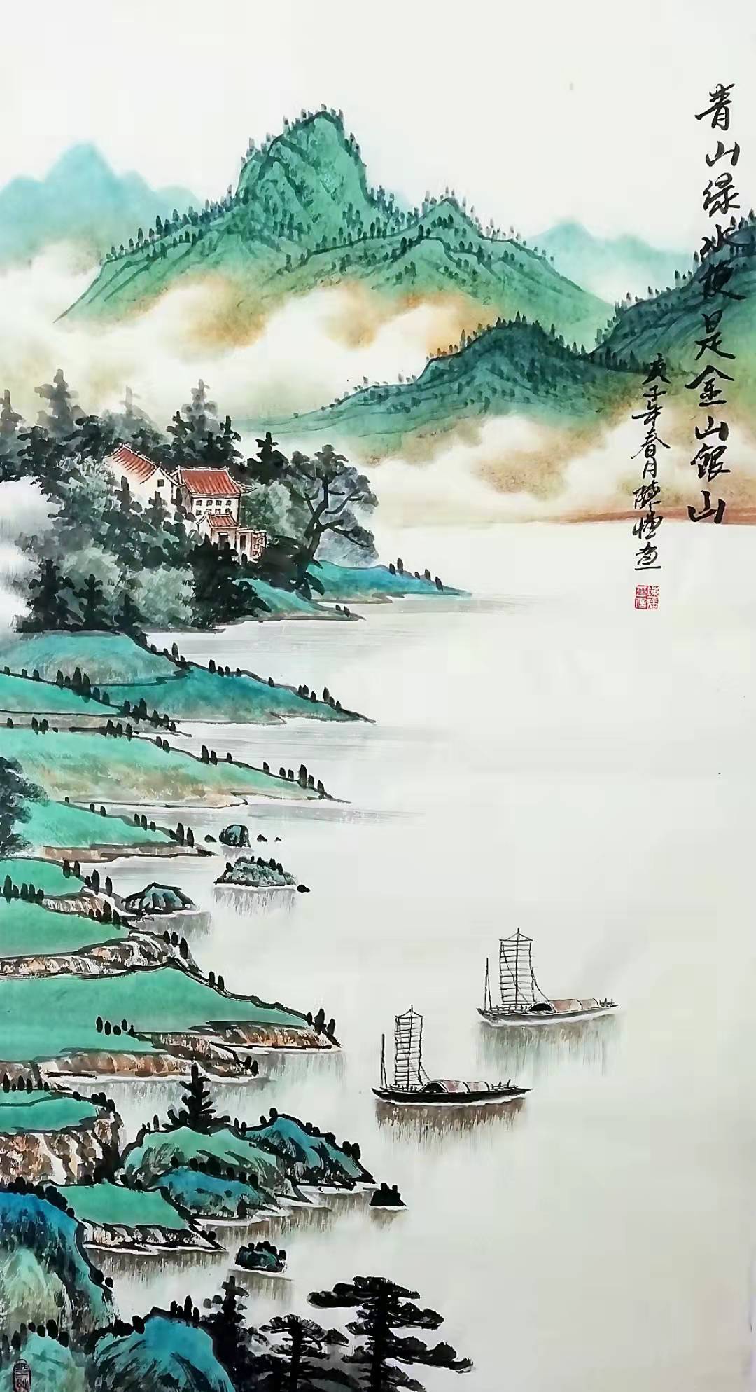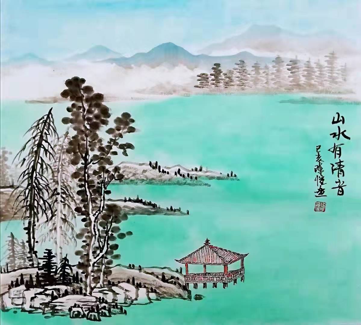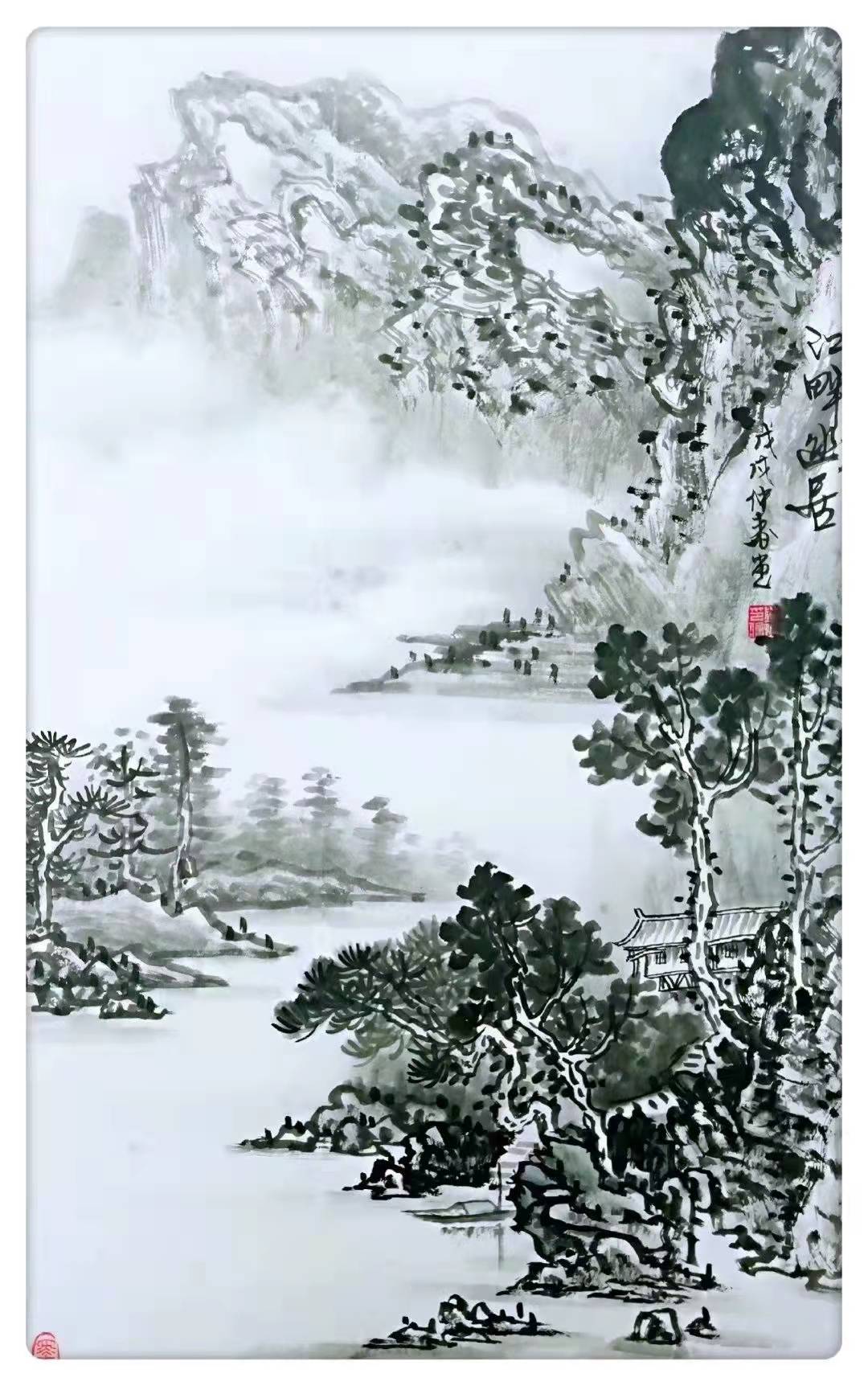 陈憧,自幼喜欢绘画,临池染翰,终日不缀,记不清有多少个日日夜夜,陈憧在名师的教导下,从《芥子园》入手,遍览历朝名画,取长补短,吸取精髓,将不同的技法与历史文化元素交融汇合,转换成极具个人特色又符合绘画要求的趣味意象,形神兼得,直抒胸臆,终于自成一家。陈憧循古法而出新意,北骨南风,墨色浓淡清雅,技法精湛娴熟,山川秀丽清新,其画作构图既像天上仙景,又似人间美境,令人拍案叫绝。
