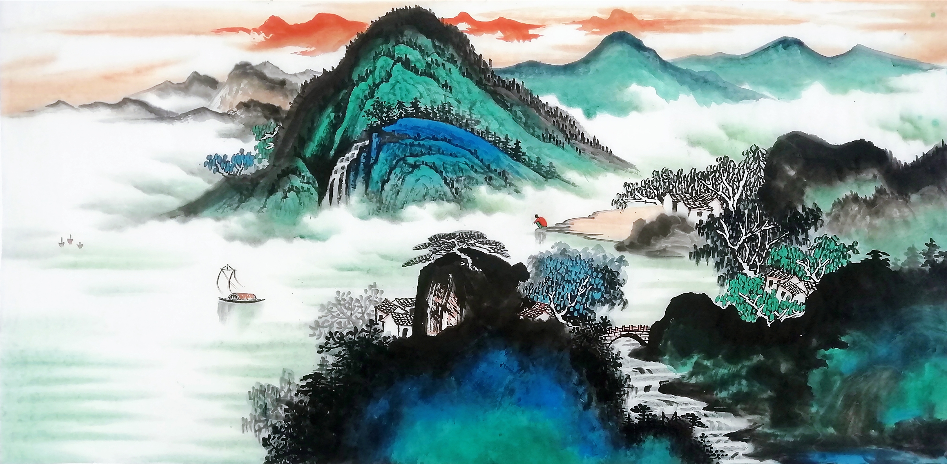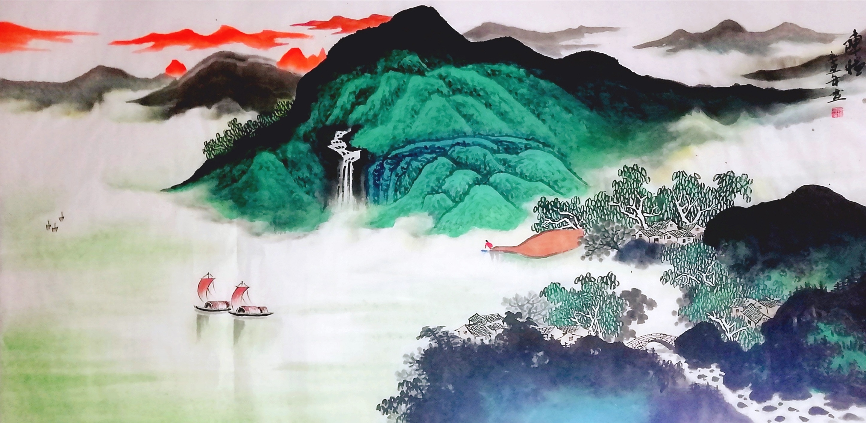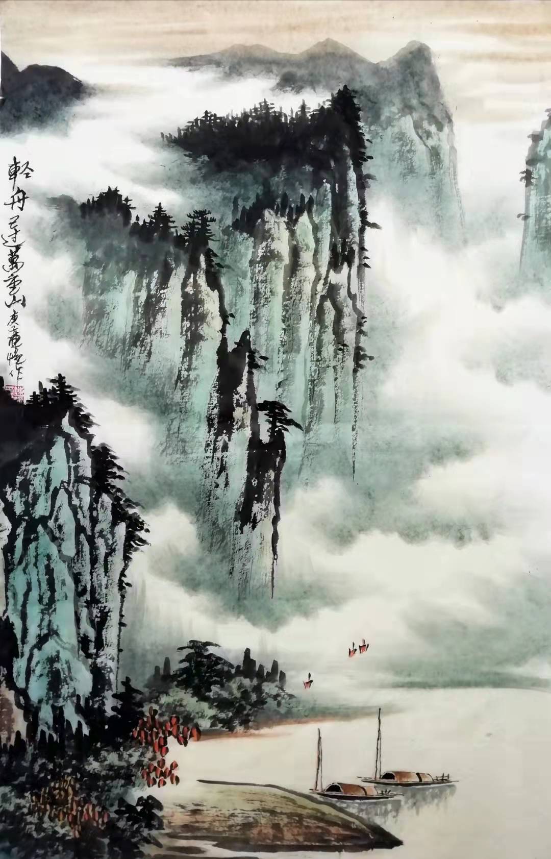 陈憧,自幼喜欢绘画,临池染翰,终日不缀,记不清有多少个日日夜夜,陈憧在名师的教导下,从《芥子园》入手,遍览历朝名画,取长补短,吸取精髓,将不同的技法与历史文化元素交融汇合,转换成极具个人特色又符合绘画要求的趣味意象,形神兼得,直抒胸臆,终于自成一家。陈憧循古法而出新意,北骨南风,墨色浓淡清雅,技法精湛娴熟,山川秀丽清新,其画作构图既像天上仙景,又似人间美境,令人拍案叫绝。