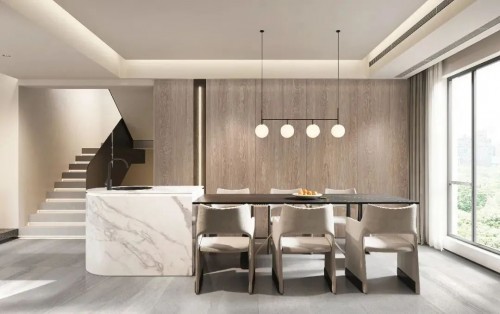 东鹏瓷砖墙面岩板曼哈顿也是诠释侘寂食愈风的绝佳选择。中灰色调的曼哈顿时刻流露着淡然典雅的韵味,让家流露出质朴却精致隐奢的美。