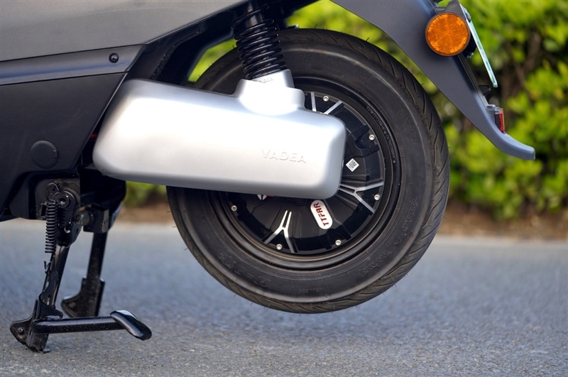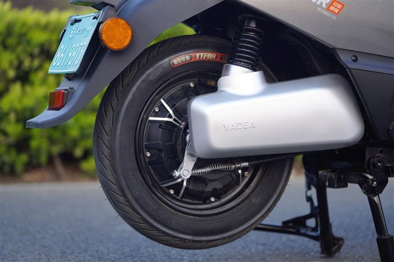 前后均为TTFAR低滚阻轮胎,采用液压加弹簧的混合避震。我们收到的基础版采用的是前碟后鼓的刹车配置,高配版则是前后双碟刹。不过目前这个配置,日常避震、急刹都已经够用。