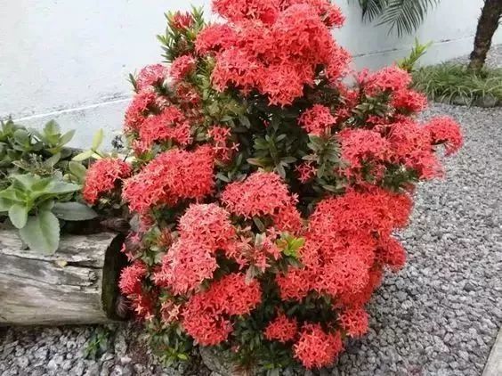 在阴凉处生长的龙船花,也可以保持叶子旺盛的状态,但开花就会非常少,偶尔会有零星的一两朵花。