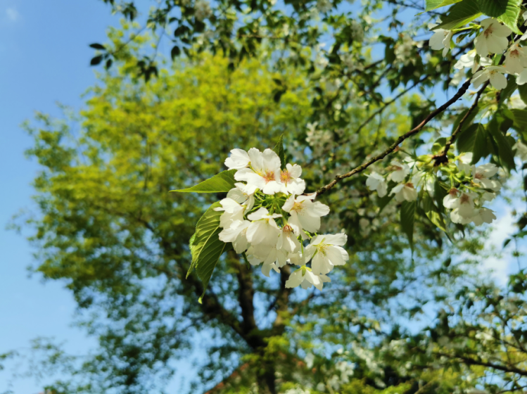 枝头的花朵翘首等待阔别已久的游客