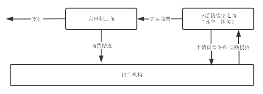 针对成立时间较短,无有效资产担保,实力较差的下游销售渠道商,可采取引入母公司(家电制造商)或担保公司进行增信的模式,仅需支付较少的担保费或零成本签发商票即可支付全额货款,操作简单,应收应付明确,家电制造商收到该商票后仍具有较大的融资或支付便利。