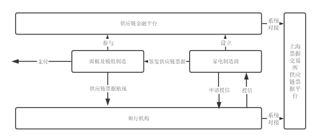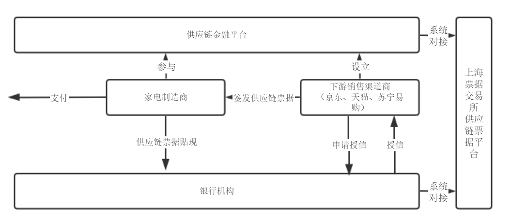 核心企业利用其在家电行业供应链中占据的绝对优势,利用其强势地位,要求供应商先货后款,对下游经销商又要先款后货,一定程度上抢占了上下游配套企业的资金和信用。目前,主要由银行为家电生产企业以及其上下游企业或终端用户提供全方位的融资、结算、资金管理等综合性金融服务。
