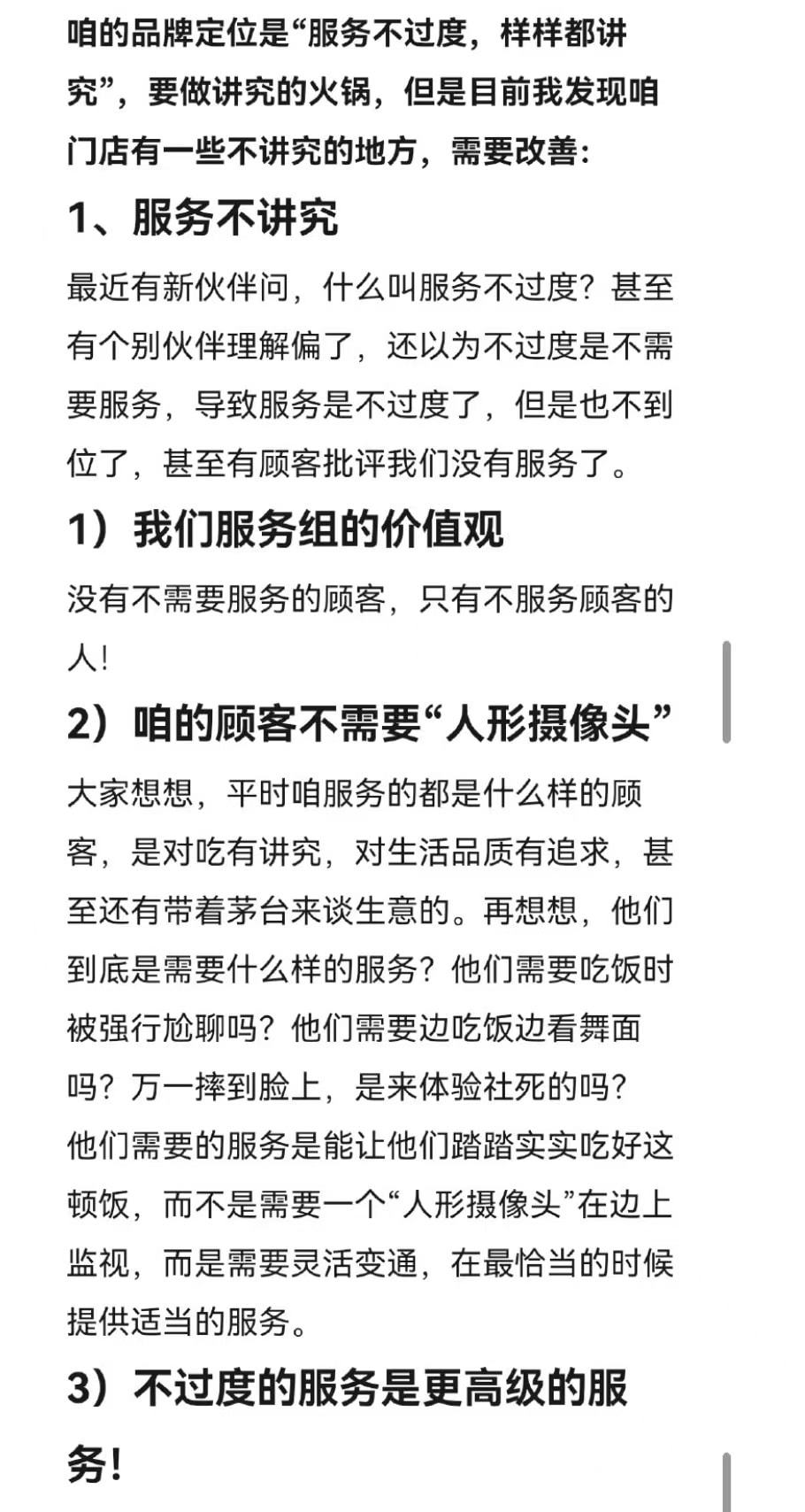 这位店长的本意或许只是在内部进行常规的竞品分析,因为他所说的话,在消费者看来都是广为人知的事情——现在的消费者,对于海底捞的服务已经越来越不买帐。