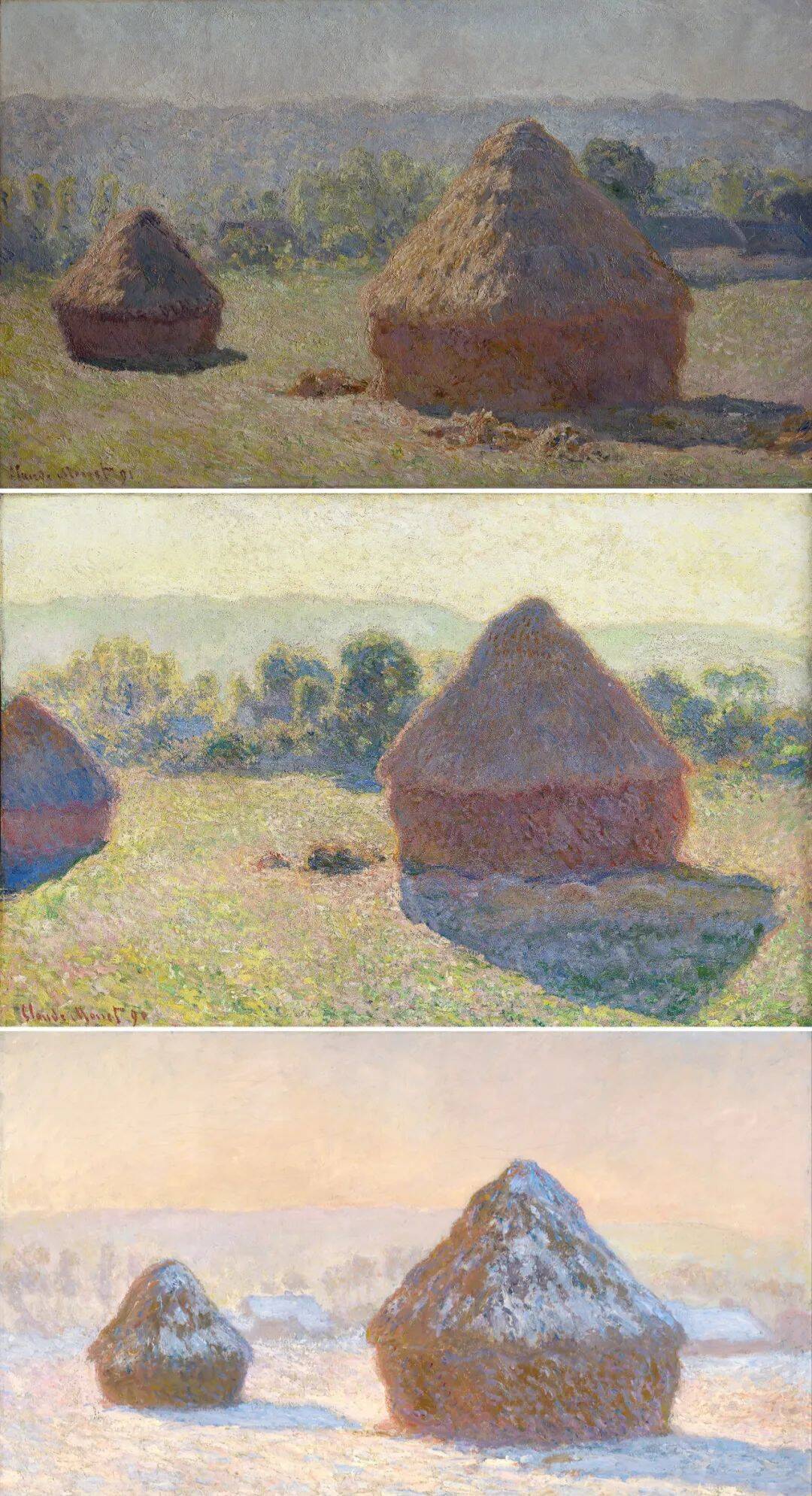 他这段话很可以说明中国画家所常说的"丘壑成于胸中,既寤发之于笔墨",这和西洋印象派画家莫奈(Monet)早、午、晚三时临绘同一风景至于十余次,刻意写实的态度,迥不相同。