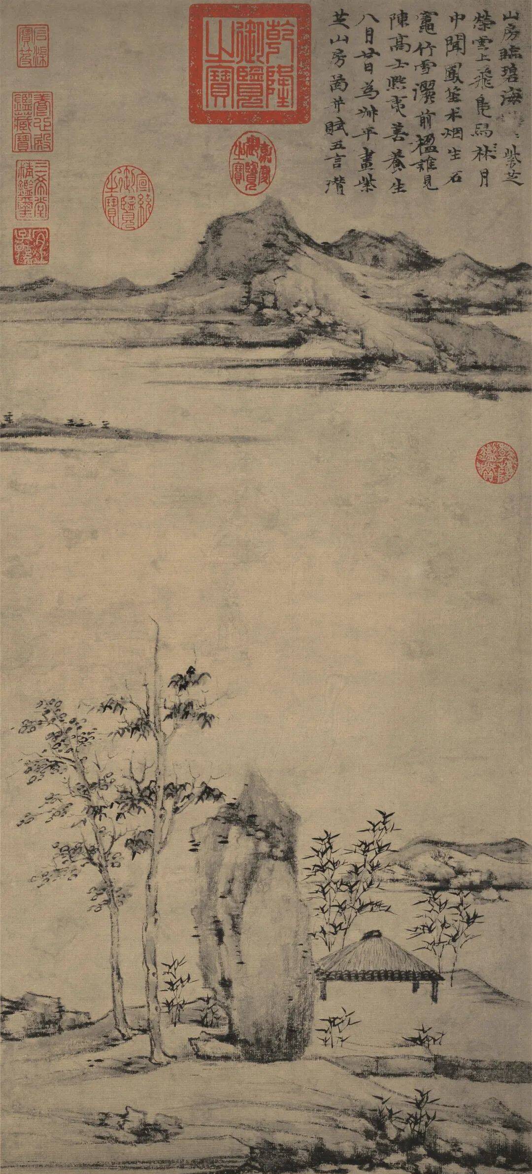 黄子久以狄阿理索斯(Dionysius)的热情深入宇宙的动象,米友仁却以阿波罗(Apollo)式的宁静涵映世界的广大精微,代表着艺术生活上两种最高精神形式。