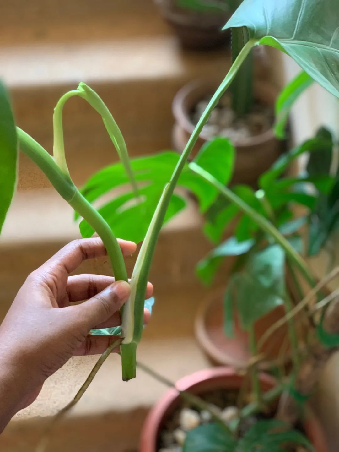 繁殖龟背竹的首要条件就是它的枝条要长得高一些,长足够多的节点,每一节就可以切割下来,扦插培育成新的小盆栽。