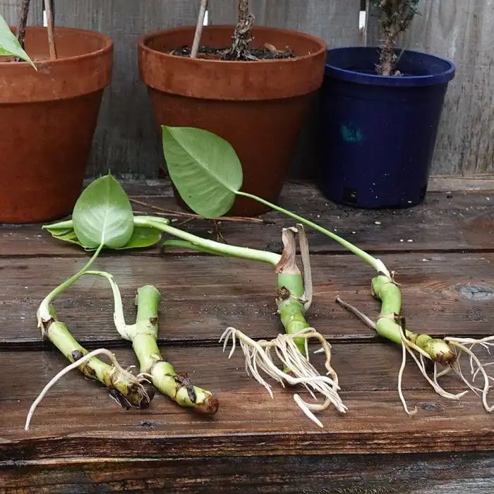 土培扦插繁殖龟背竹很简单,晾干伤口的枝条直接扦插在盆土中,后期正常打理就能生根发芽。