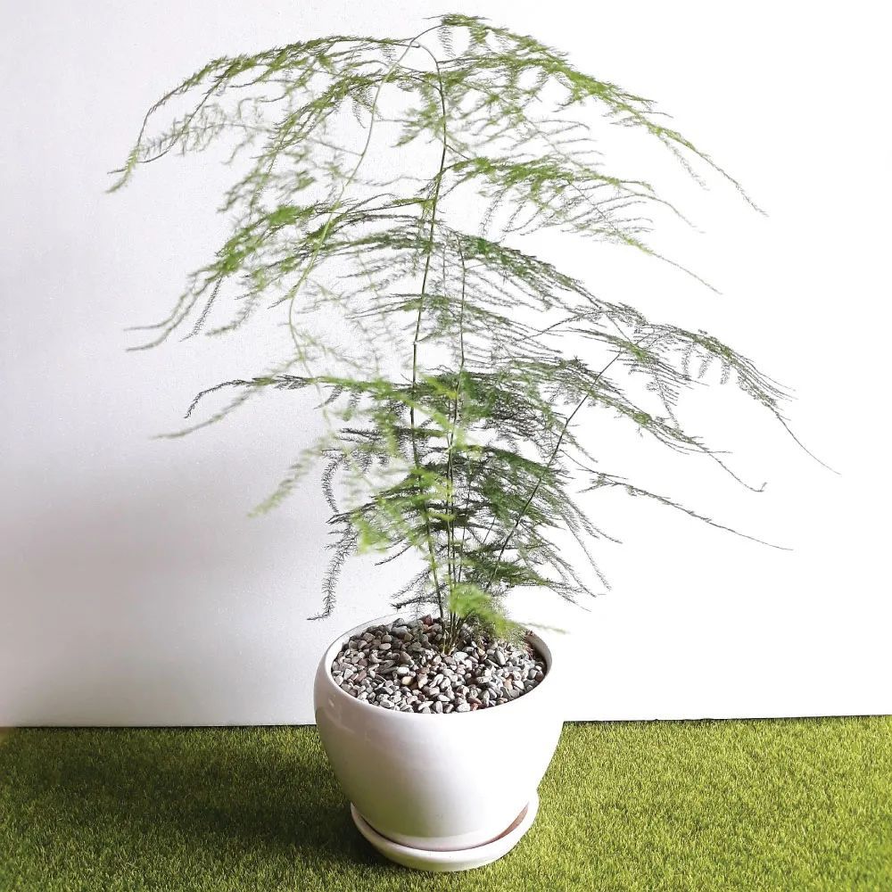 盆栽文竹养在室内是特别容易黄叶子的,由于通风不好、光照不足、浇水不当、空气干燥,或是盆土透气性排水性不好,都很容易引起黄叶,严重时还容易引起烂根。