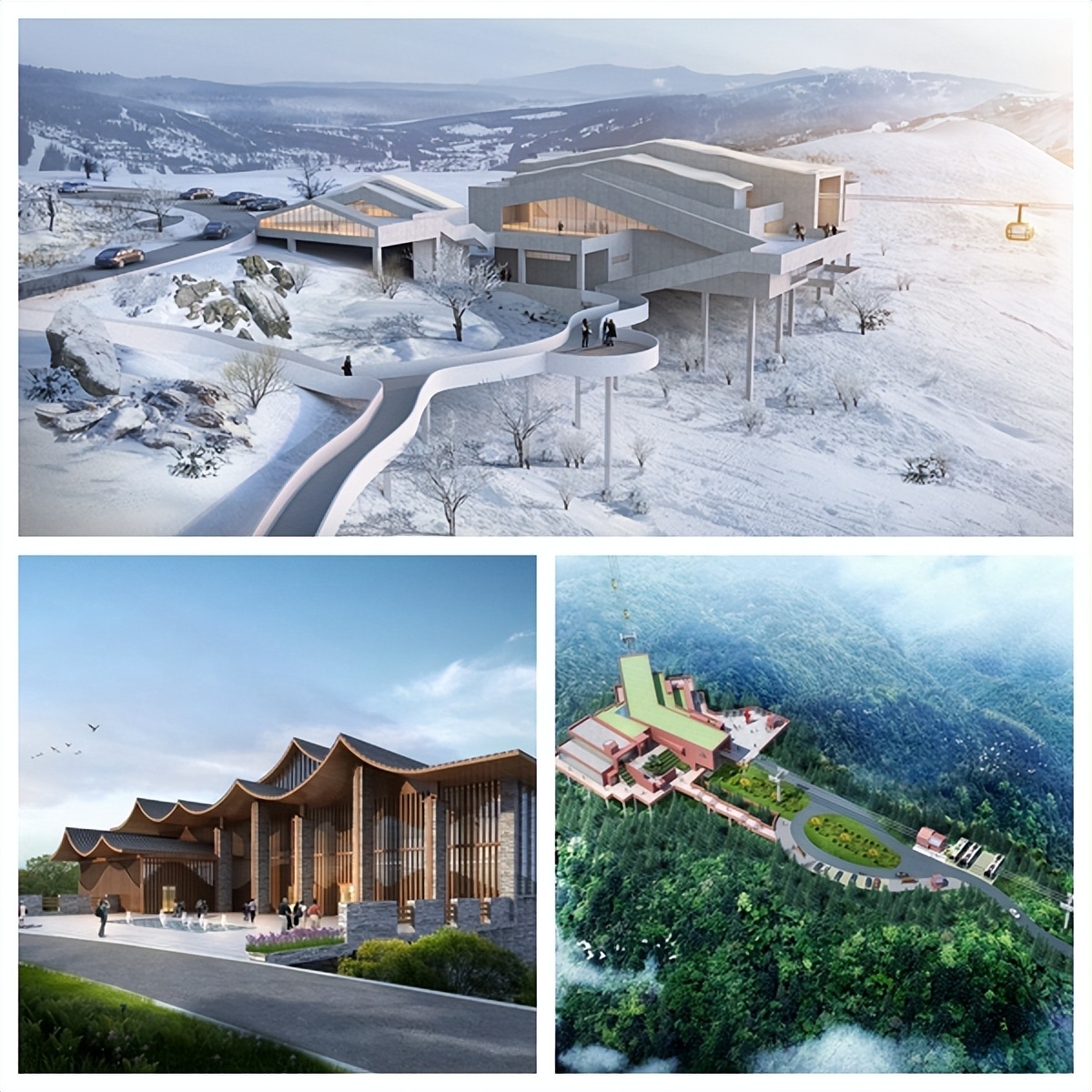 (上图:索道上站;下左:索道中站;下右:索道下站)