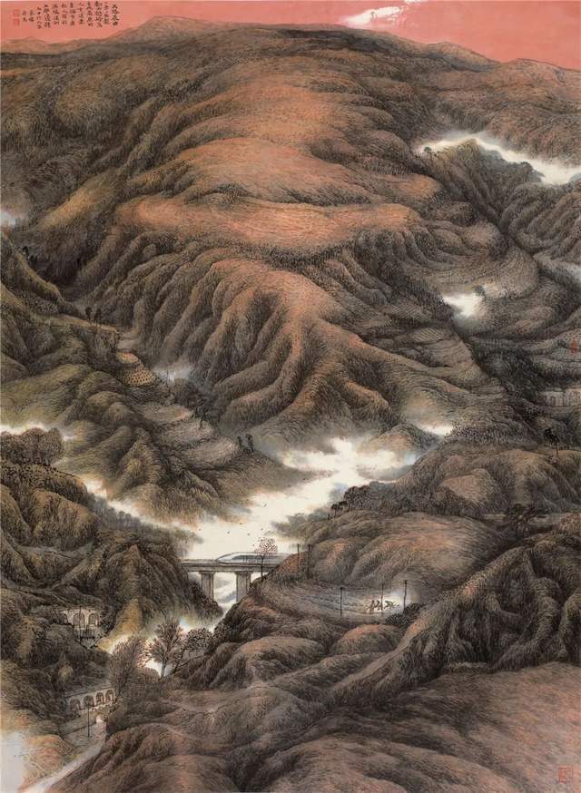 展出的作品既有表现齐鲁、陕北等地域风景的现实主义山水画,也有极具个性化、致力于捕捉自然之灵气、神韵、光彩的浪漫主义作品,旨在表现祖国大美河山的新面貌、新气象,呈现出了具有时代精神、民族精神,又不失鲜明艺术个性的新时代山水图式。