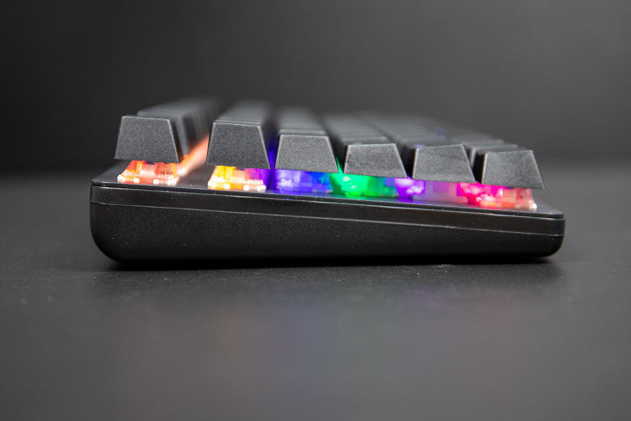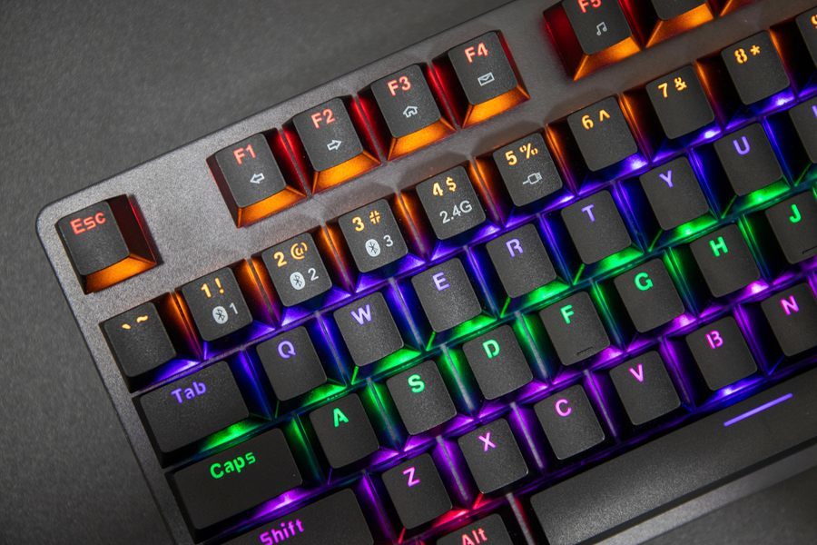 雷柏V500 PRO-87多模版机械键盘还配备了一套混彩背光系统,可支持4种亮度调节和6种灯效模式。其中的灯效为常亮模式、涟漪模式、单点亮模式、呼吸模式、繁星点点模式,曲线模式,用户可以通过FN键加上右侧的Ctrl按键进行灯光模式的调节,选择到自身需要的灯光效果。而除了灯光模式可以切换外,灯光的速度和亮度也是可以调节。用户通过Fn+上下键可调节灯光亮度,Fn+左右键可调节灯光速度,为用户带来了更多的灯效选项,提供了更加个性化的风格。
