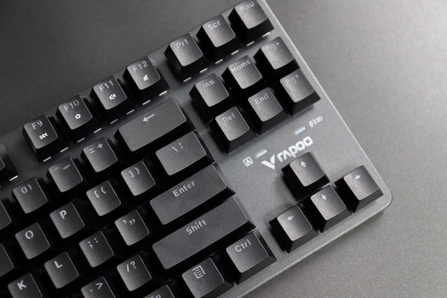 雷柏V500 PRO-87多模版机械键盘采用了悬浮式的键帽布局,键帽采用ABS材质,通过双色注塑工艺进行制造,带来了较好的透光性。键帽还在表面进行了磨砂处理,用户在使用过程中能有更好的触感,也不太容易出现打油的情况。